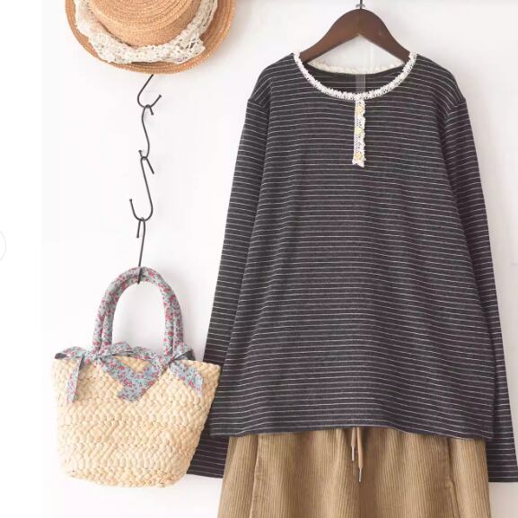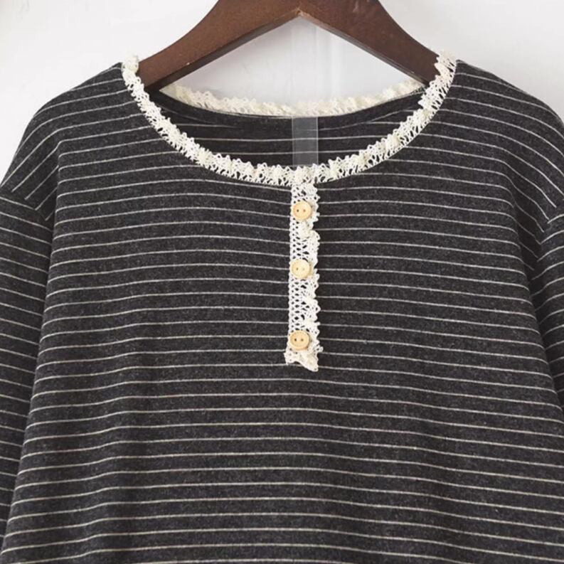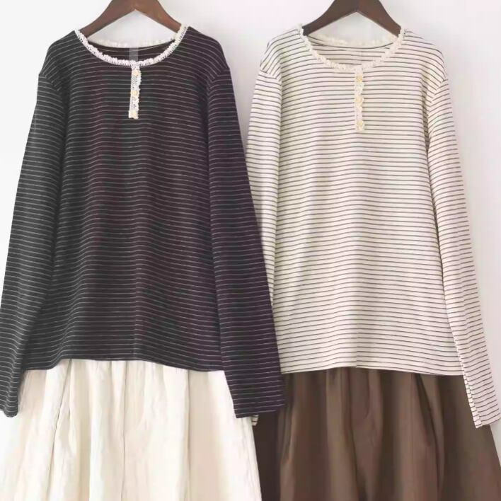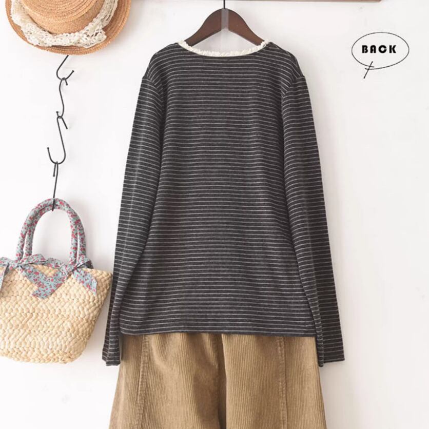 ハーフボタンラインステッチトップス ・10081