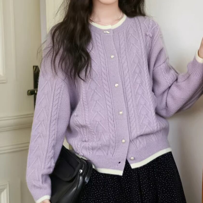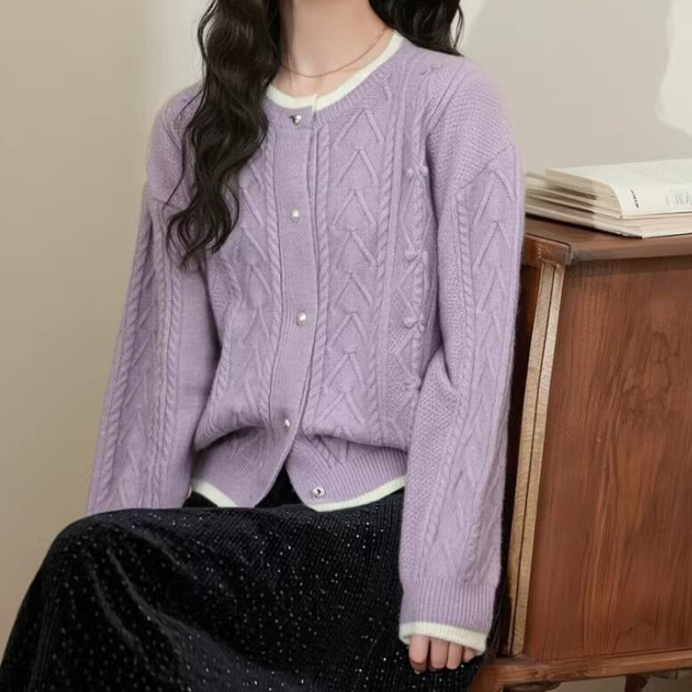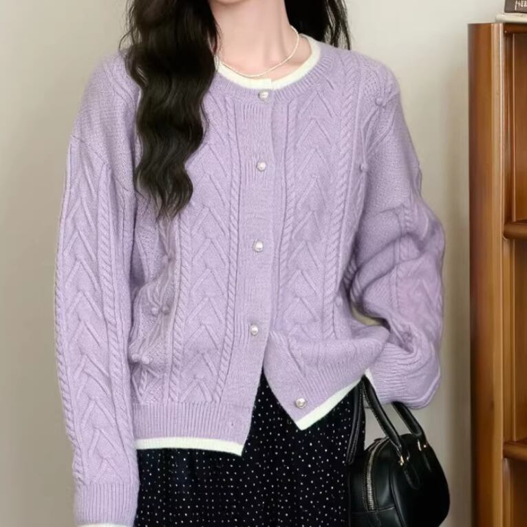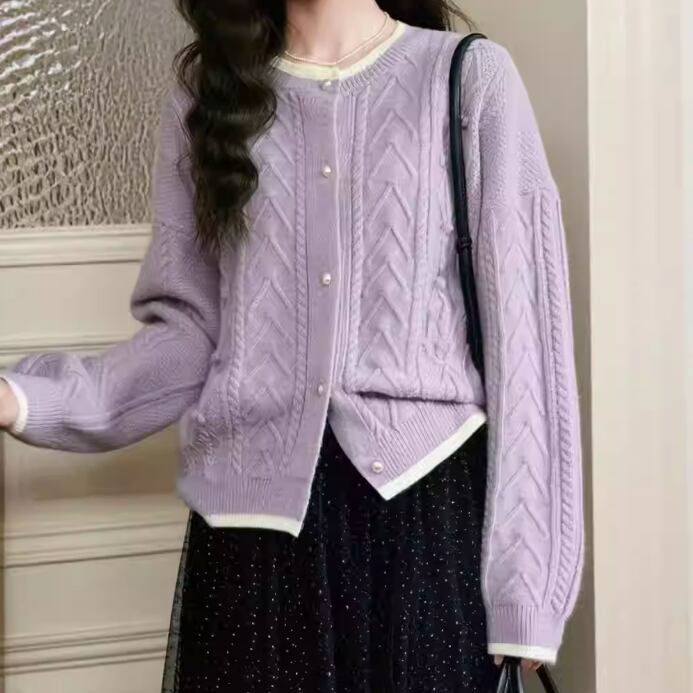 3色/フラワー刺繍ニットカーデ ・8907