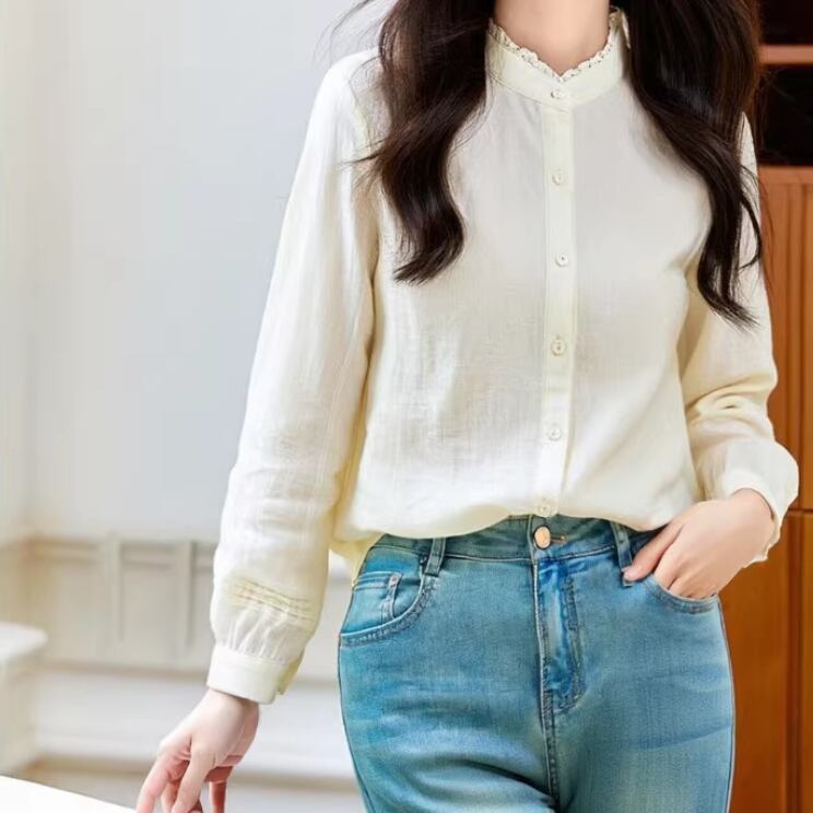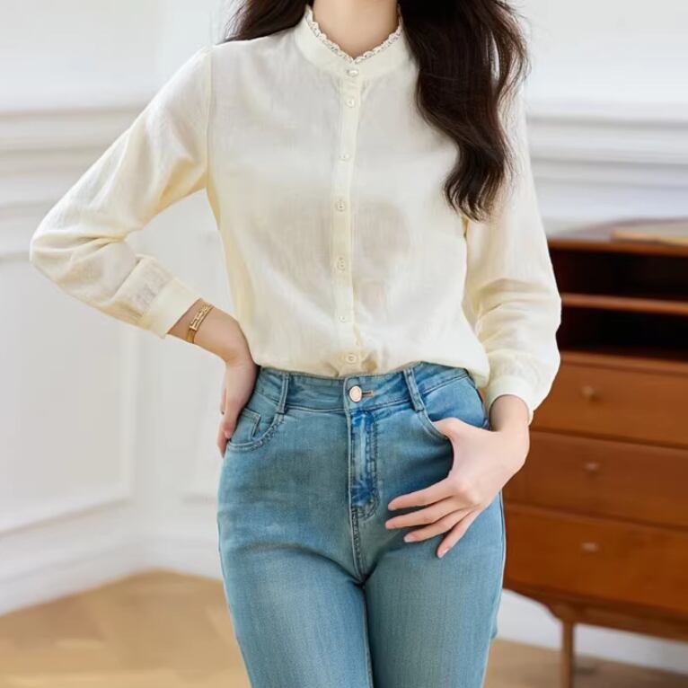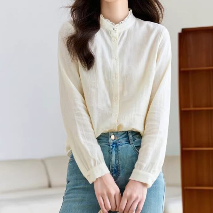 2色/フリルカラーコットンブラウス ・8607