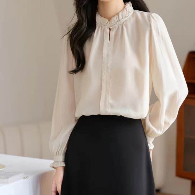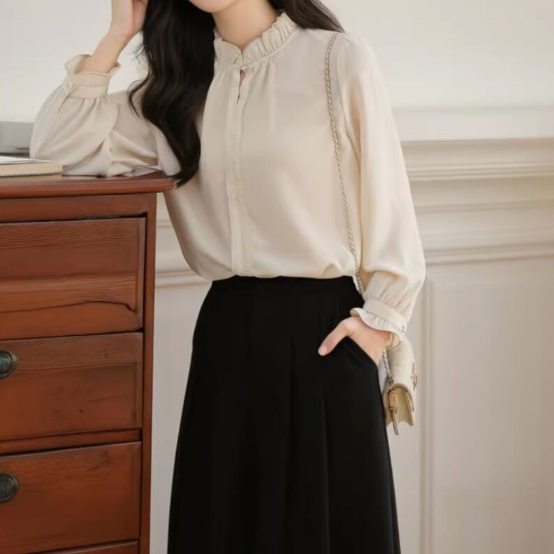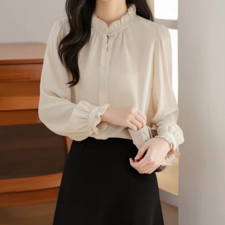 2色/フリルネックギャザーブラウス ・8577