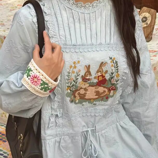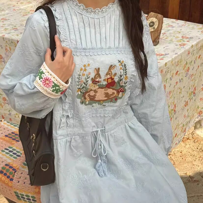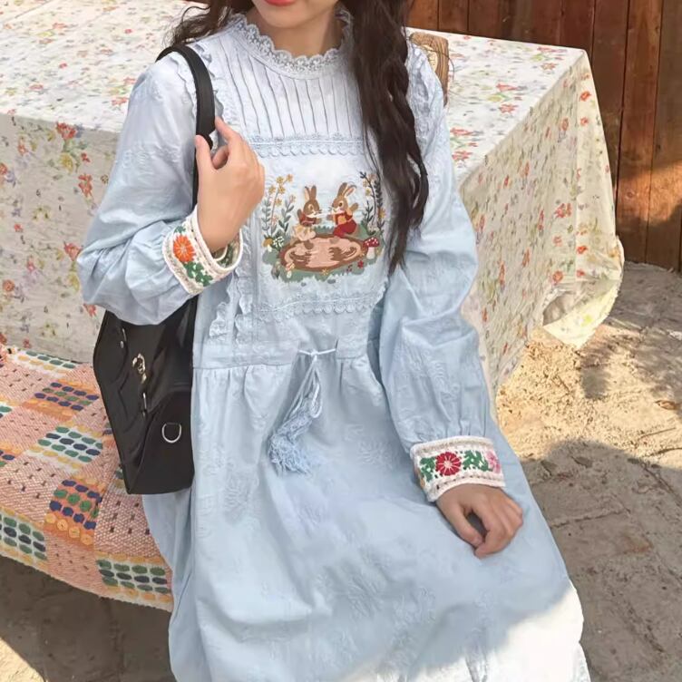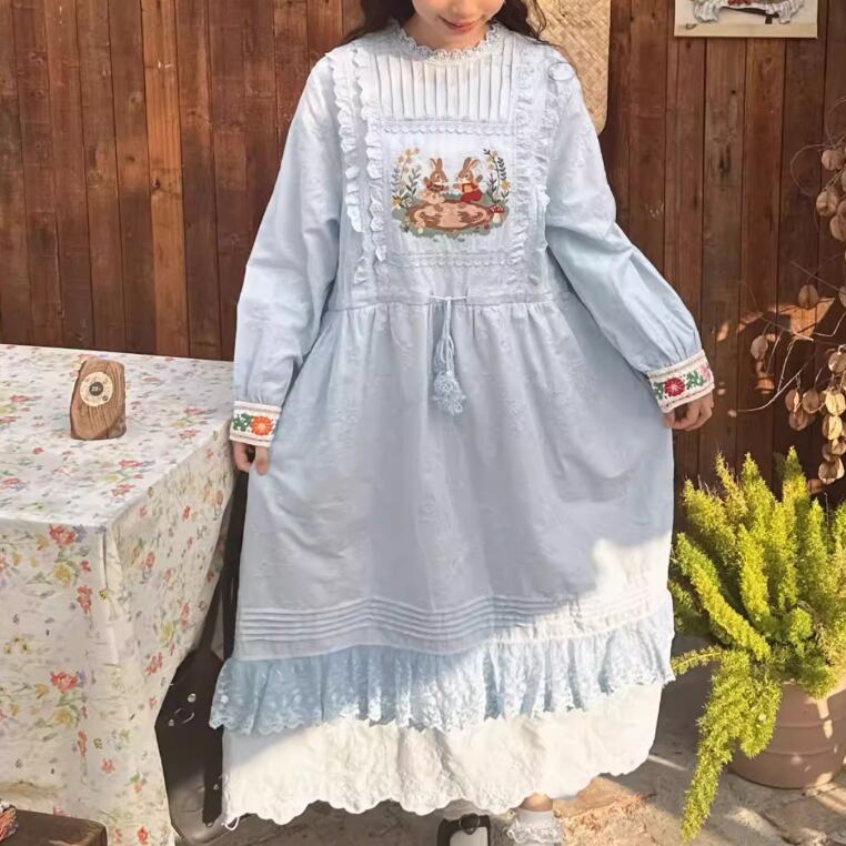 レース貼りコーデュロイワンピース ・6359
