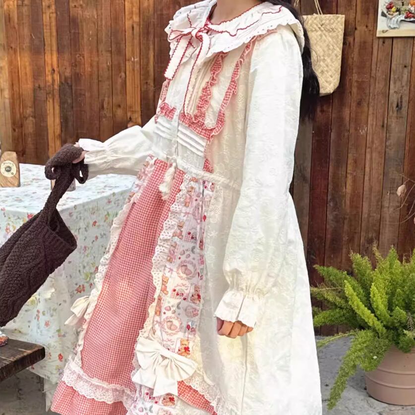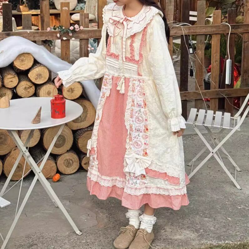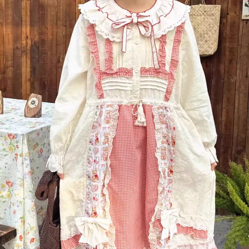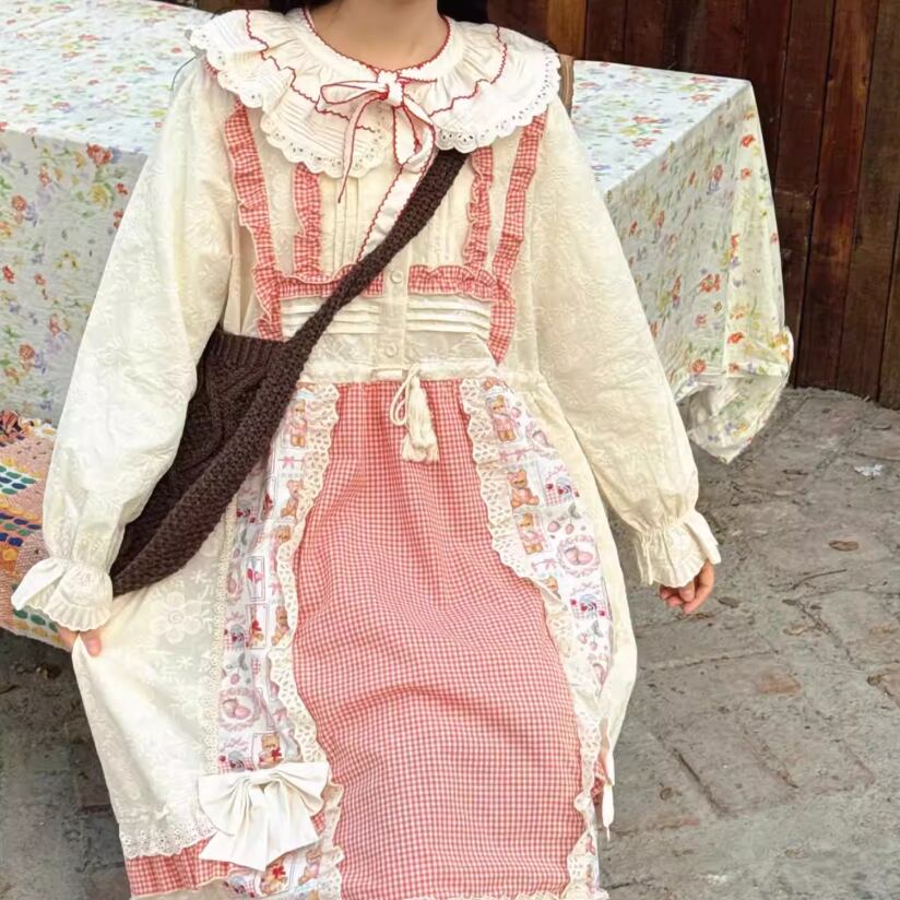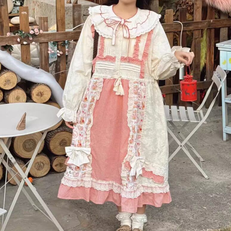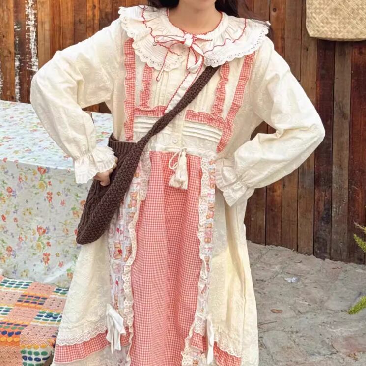 3色/レトロチェック柄シャツロングワンピ ・8186