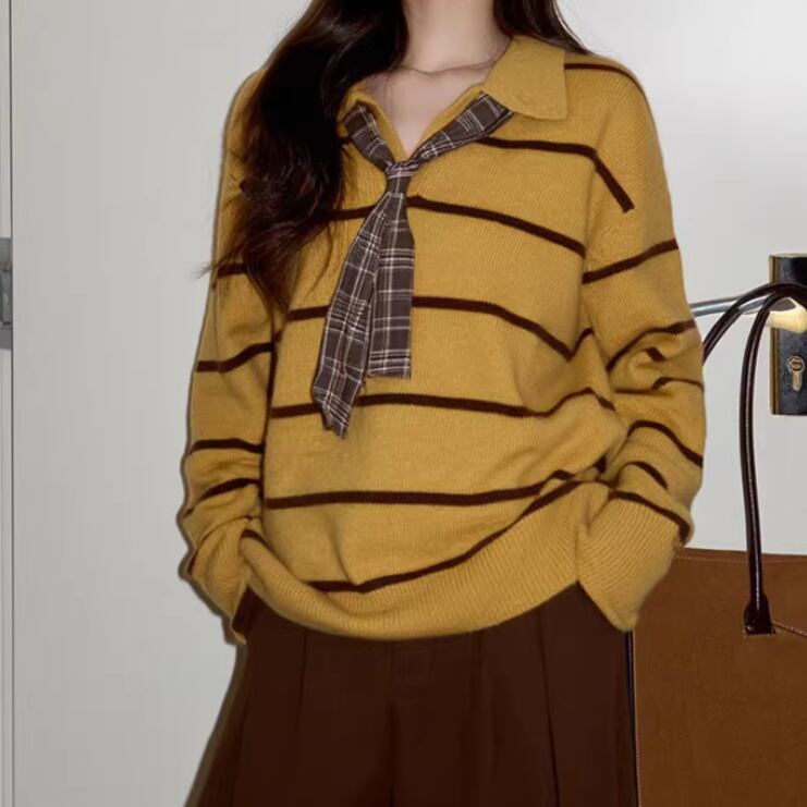2色/しまうま刺繍ニットトップス ・10177
