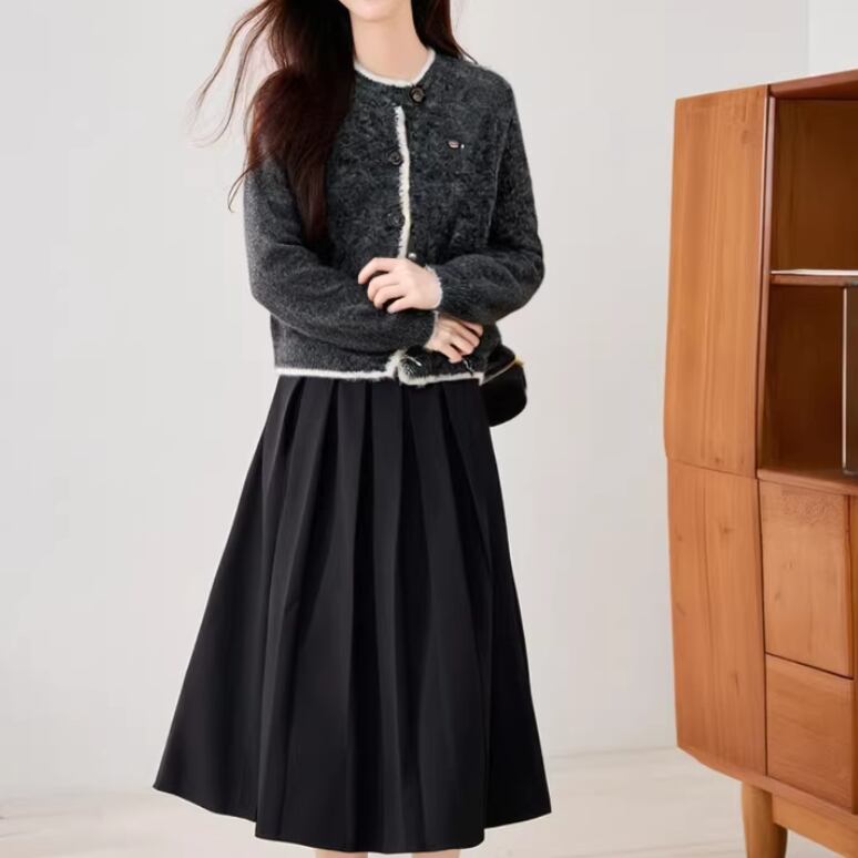 ノーカラーニットロングコート ・9036