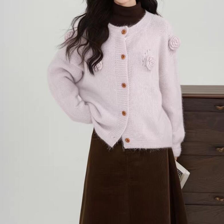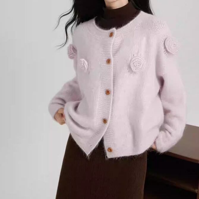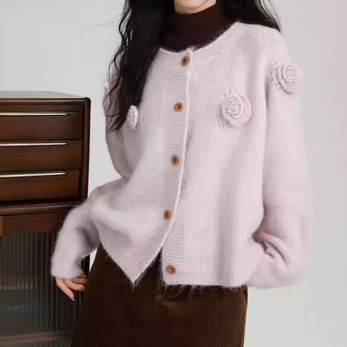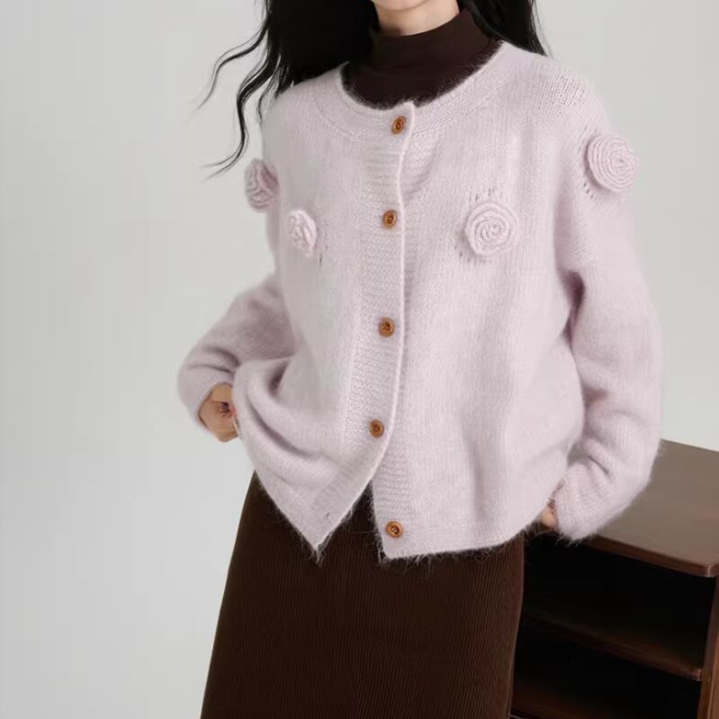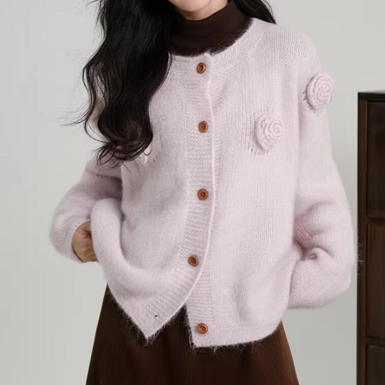 3色/フラワー刺繍ニットカーデ ・8907