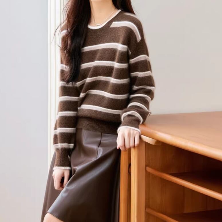 2色/しまうま刺繍ニットトップス ・10177
