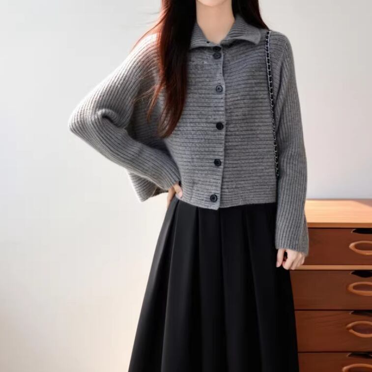 ノーカラーニットロングコート ・9036