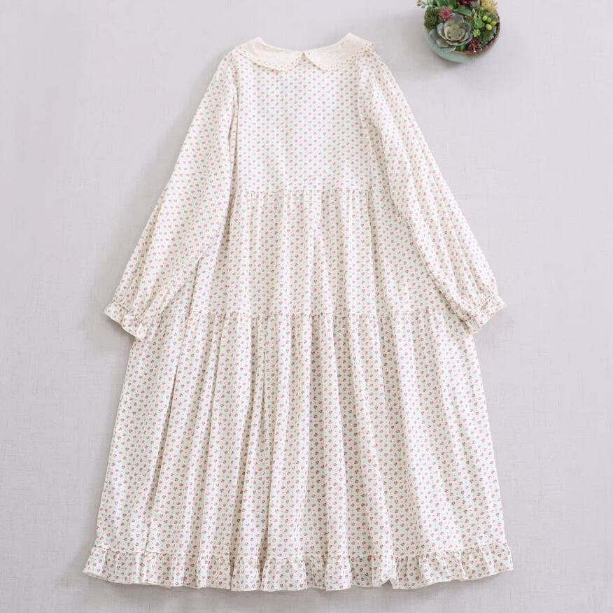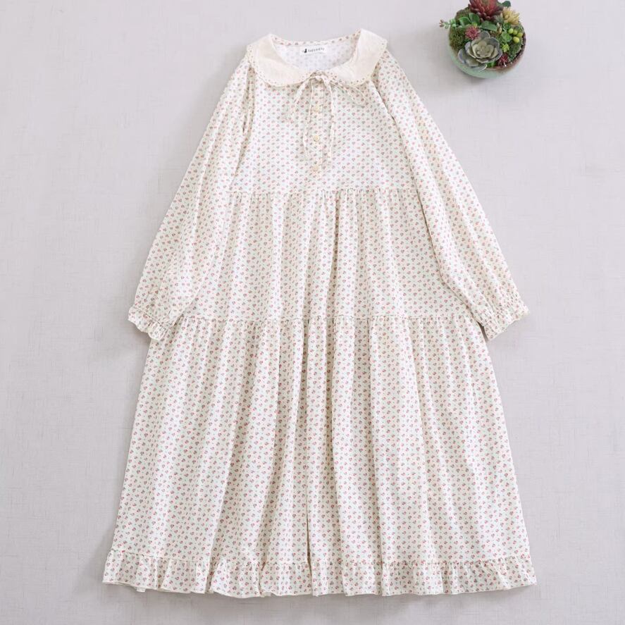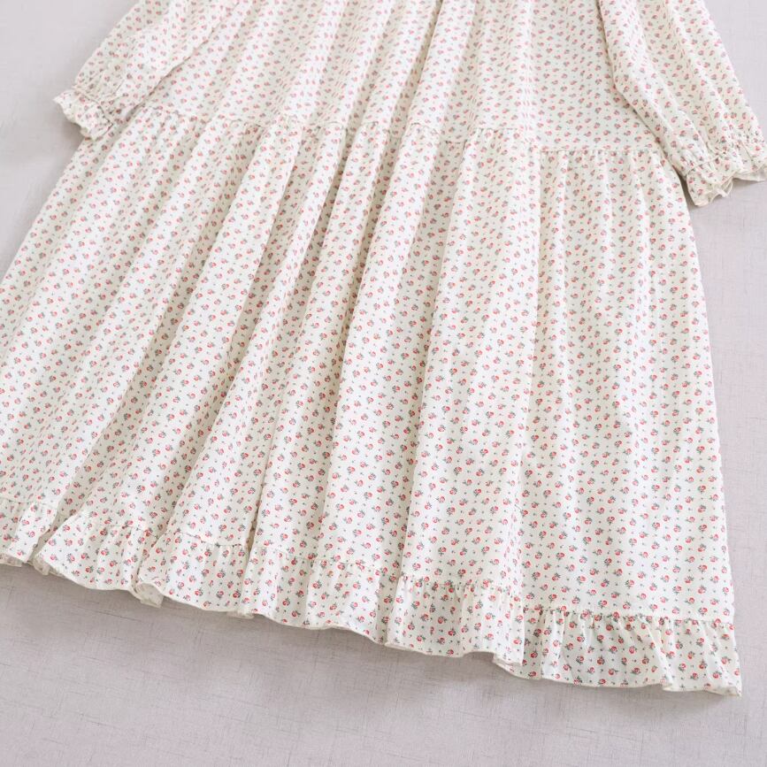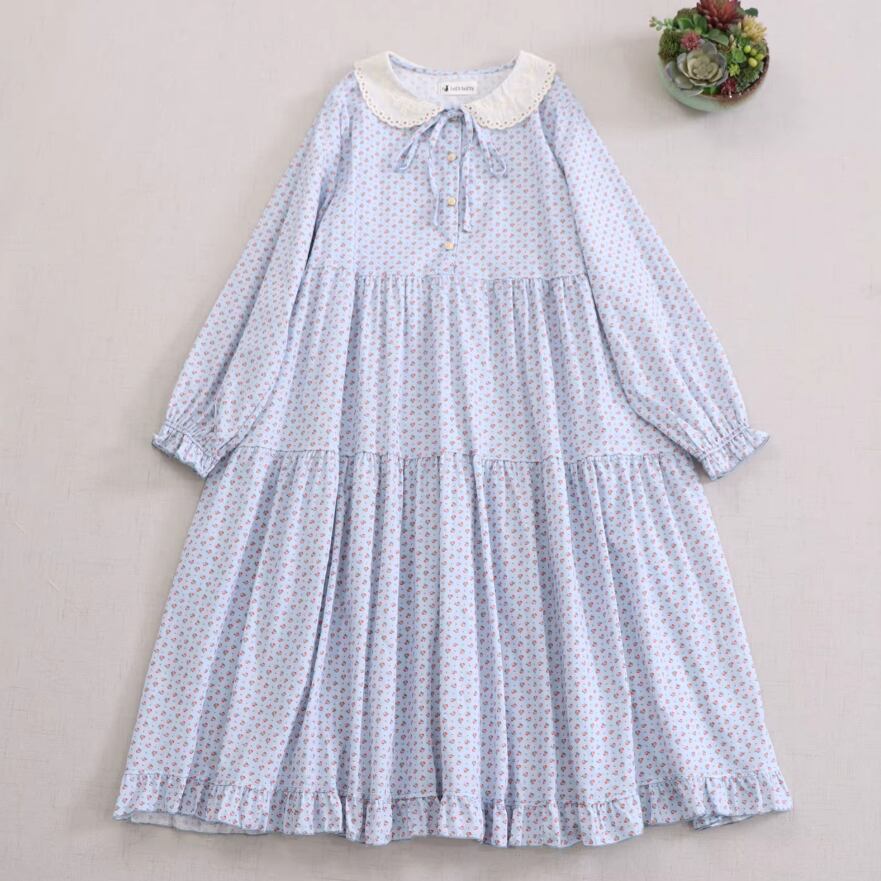 2色/丸襟ギャザー小花柄ワンピース ・10210