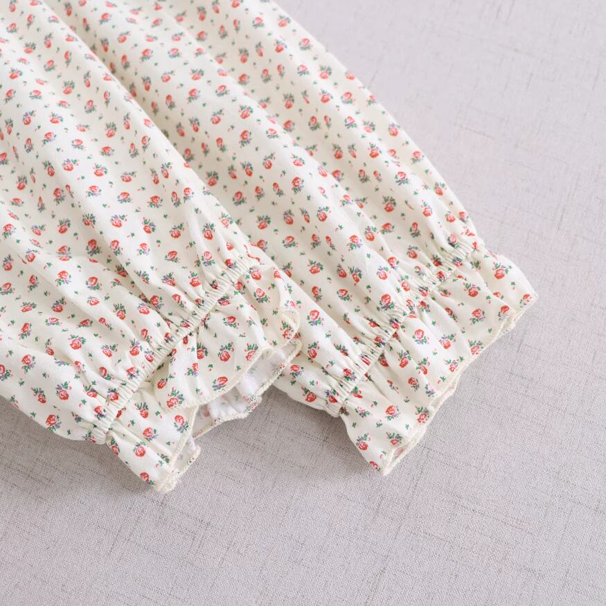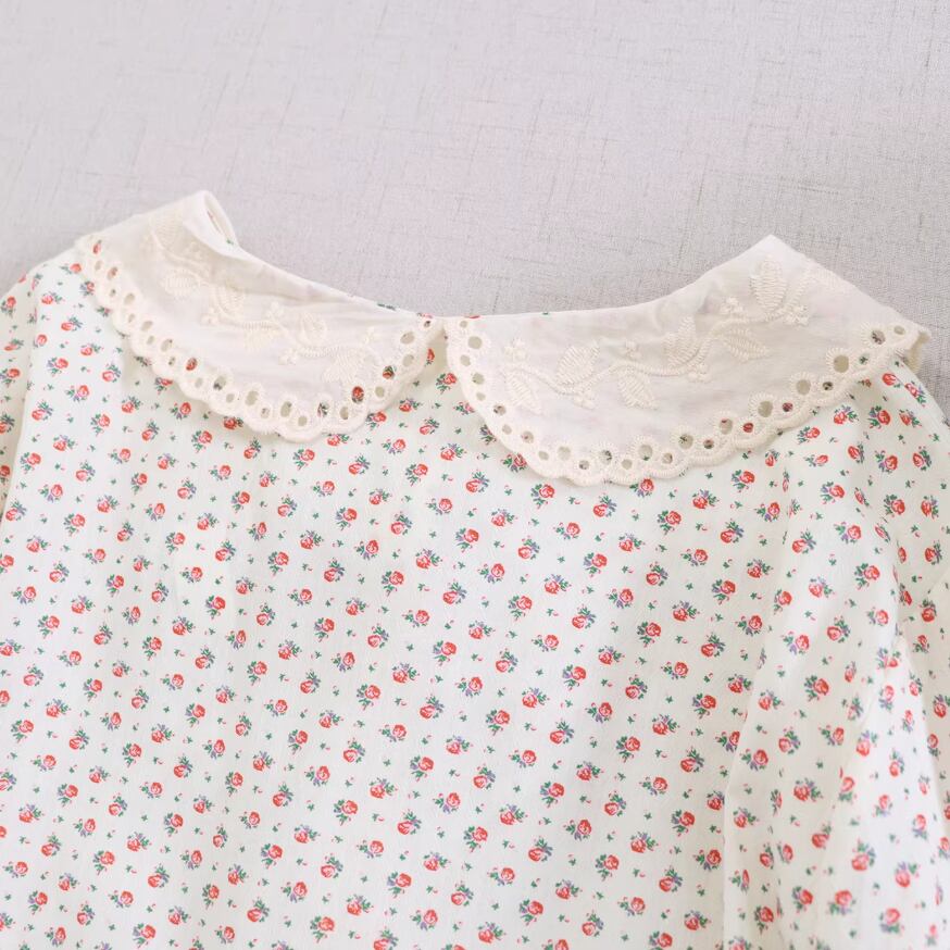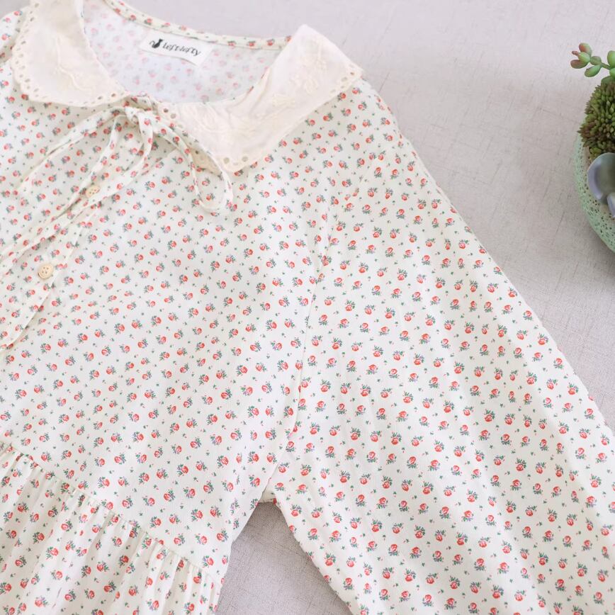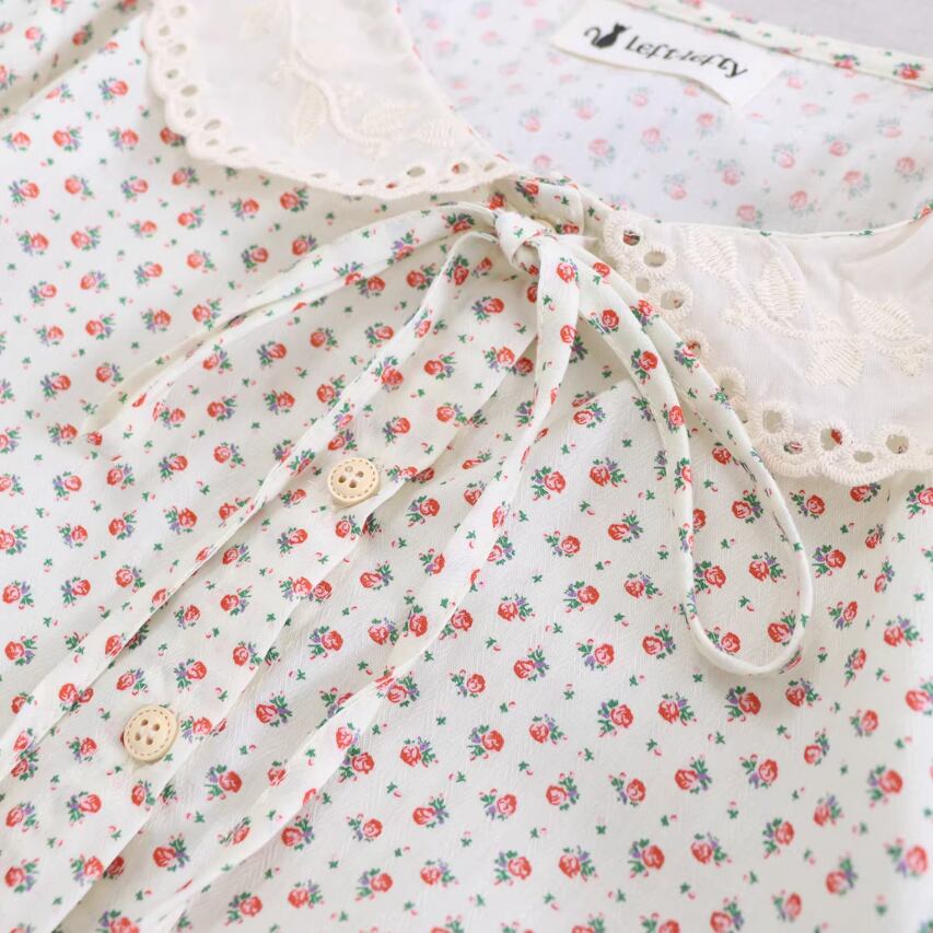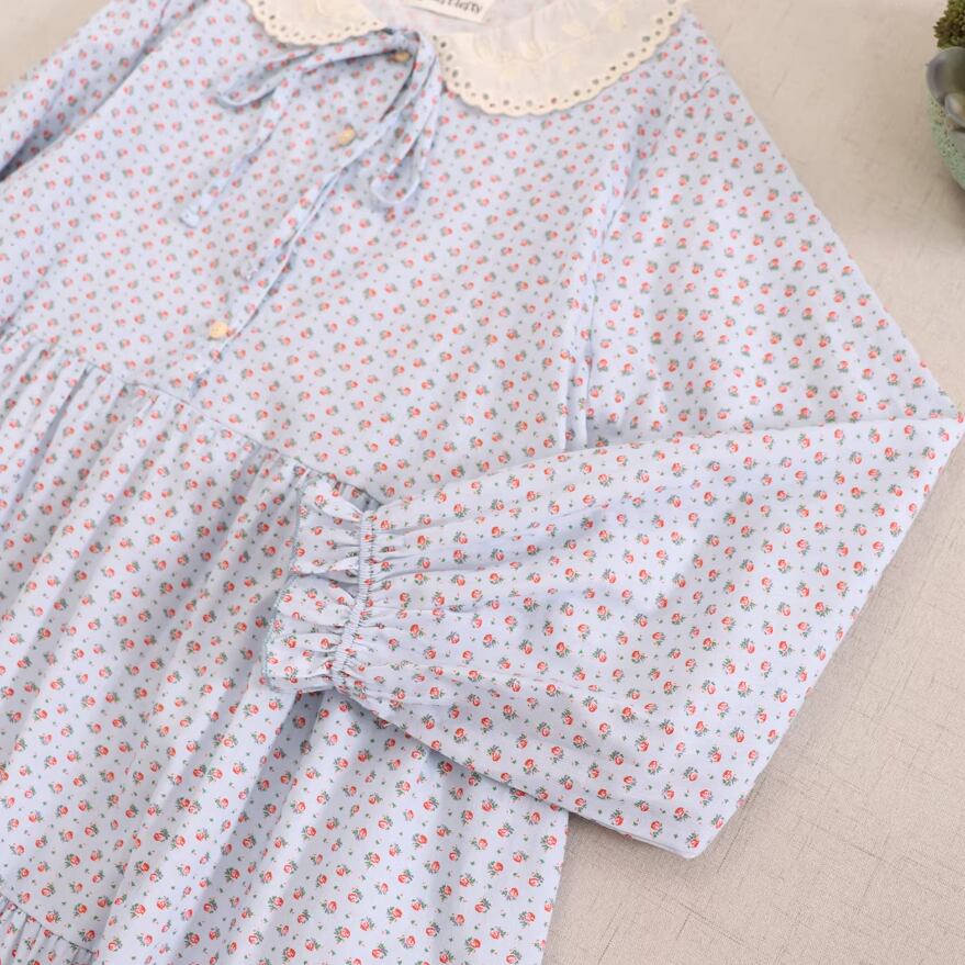 2色/丸襟ギャザー小花柄ワンピース ・10210