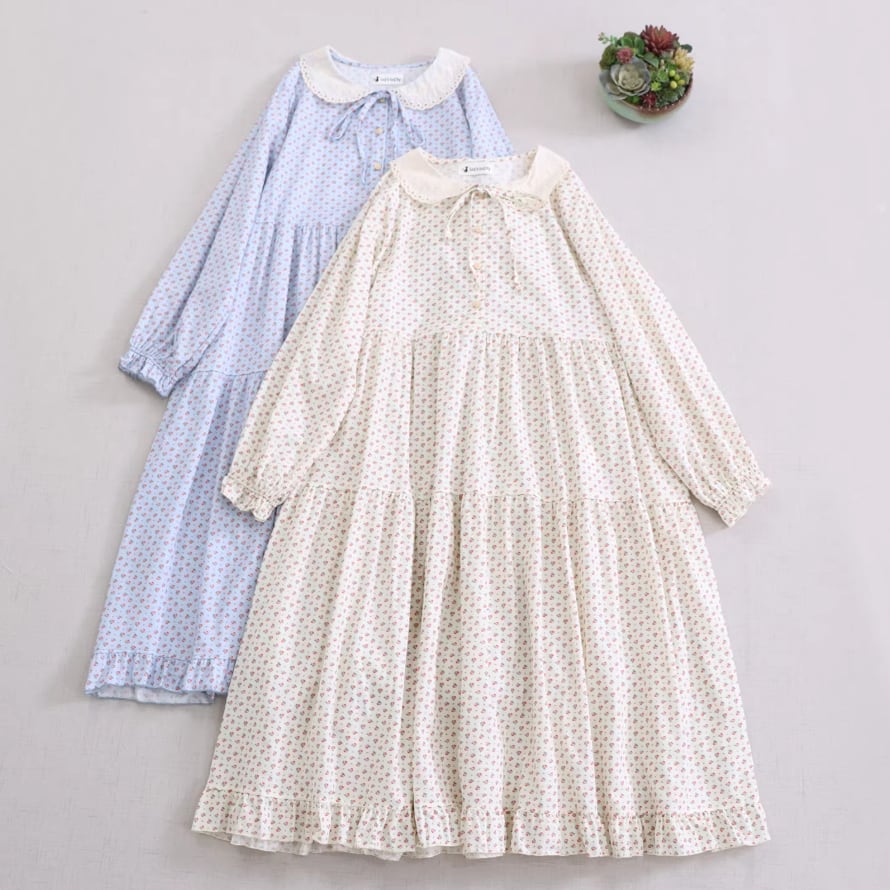 3色/フリルカラー小花柄ワンピース ・10212