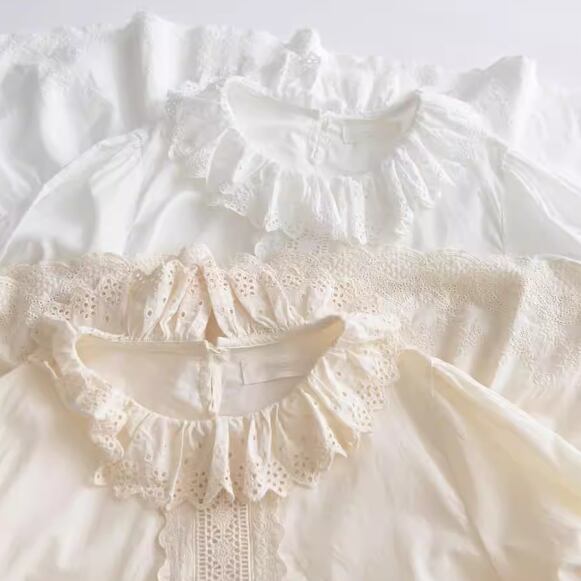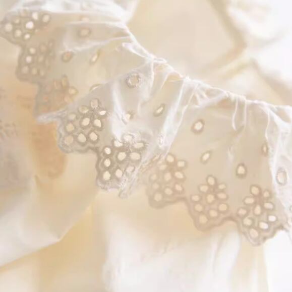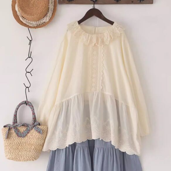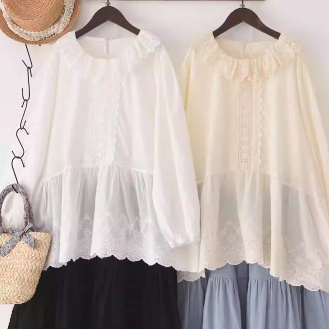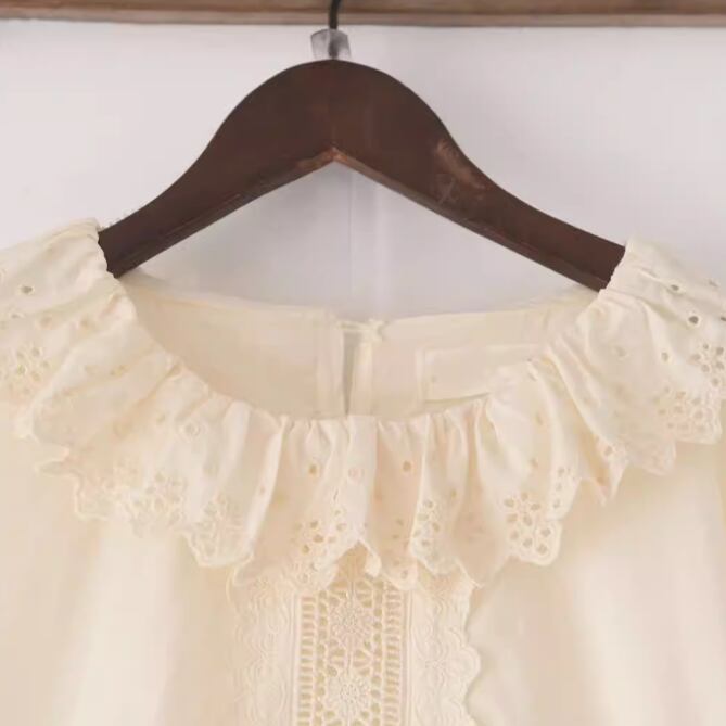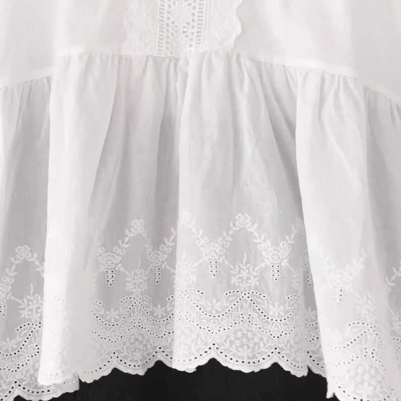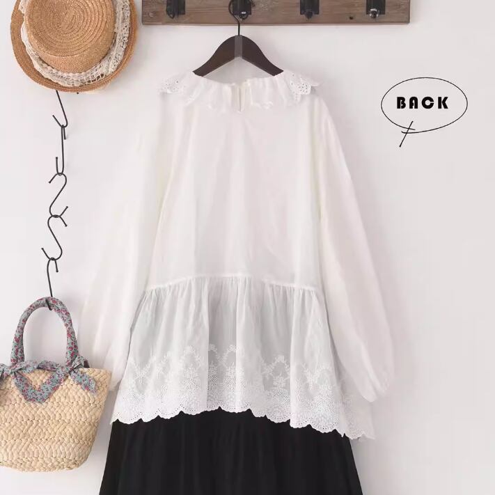 裾カットワーク刺繍ピンタックブラウス ・10197