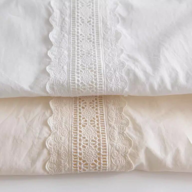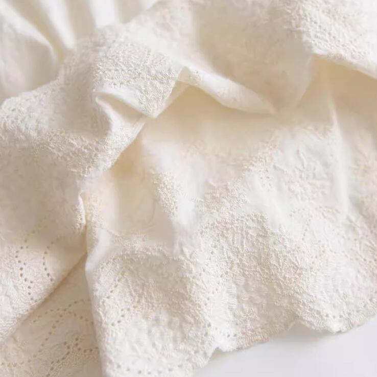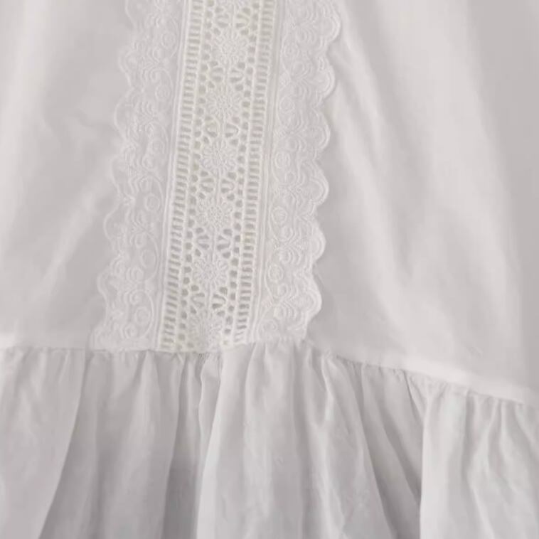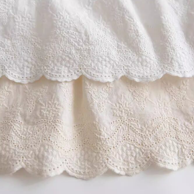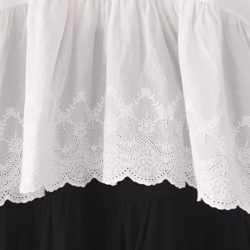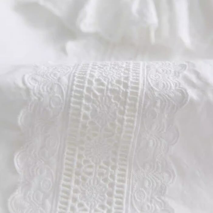 裾カットワーク刺繍ピンタックブラウス ・10197
