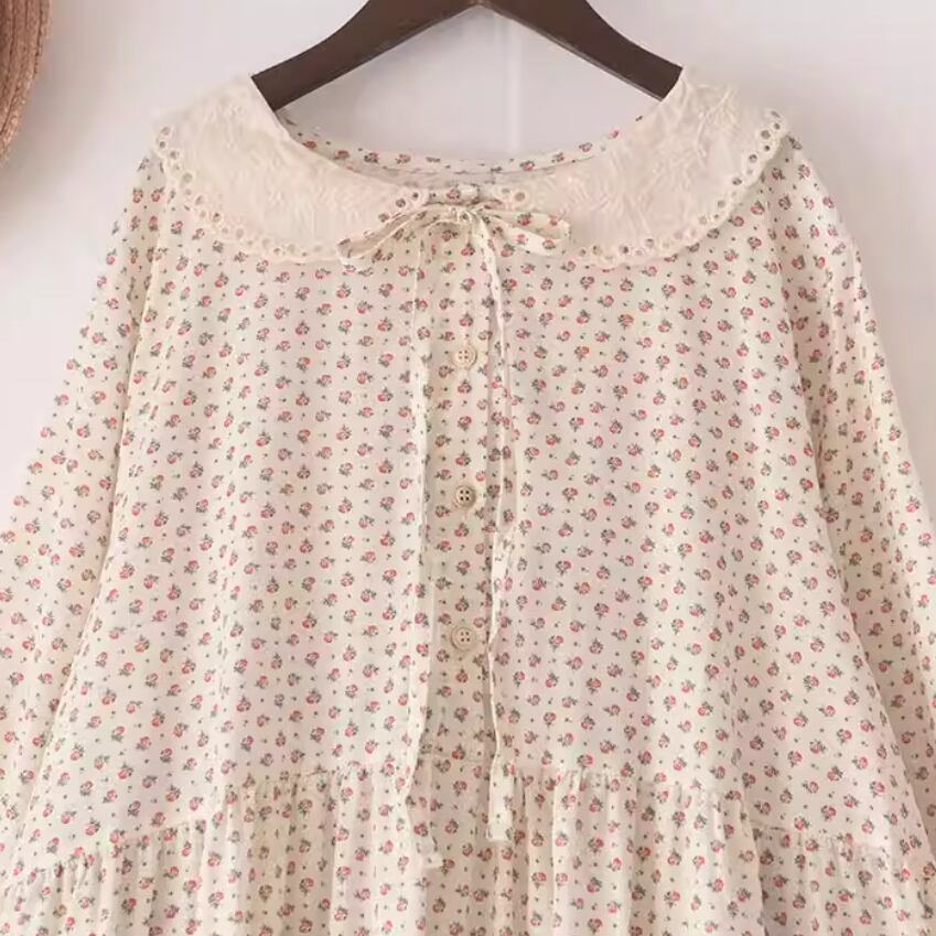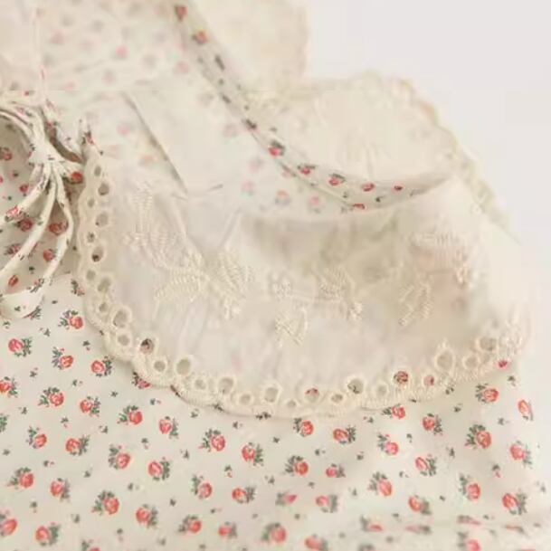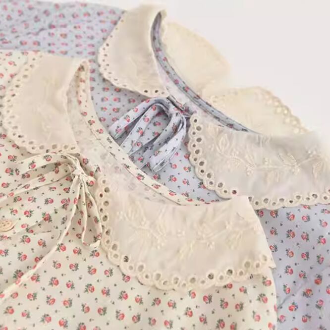 裾カットワーク刺繍ピンタックブラウス ・10197