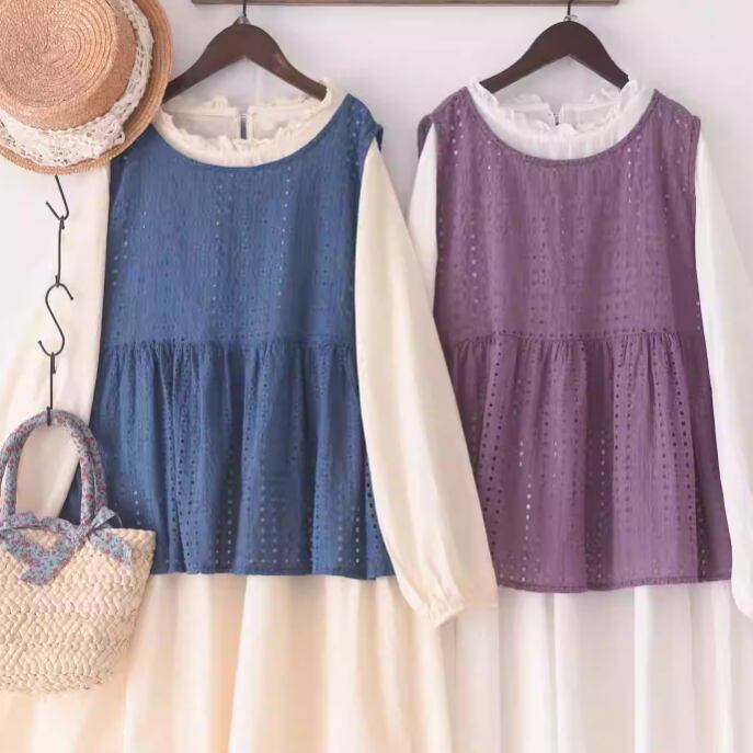 2色/カットワーク刺繍コットンワンピ ・10192