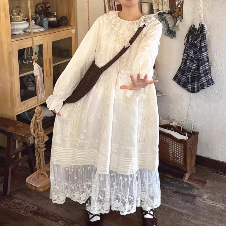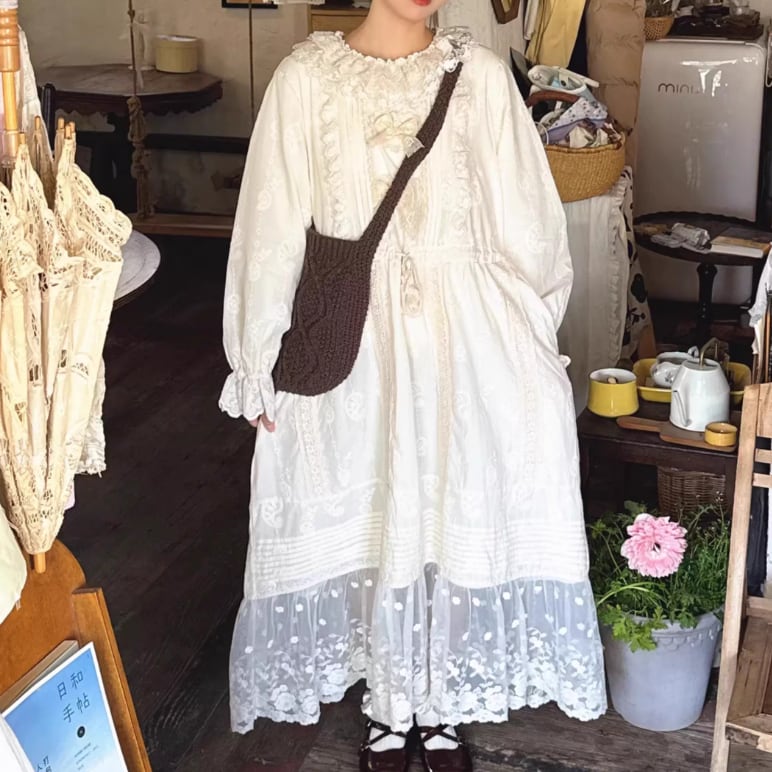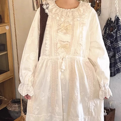 レース貼りコーデュロイロングワンピ ・6410