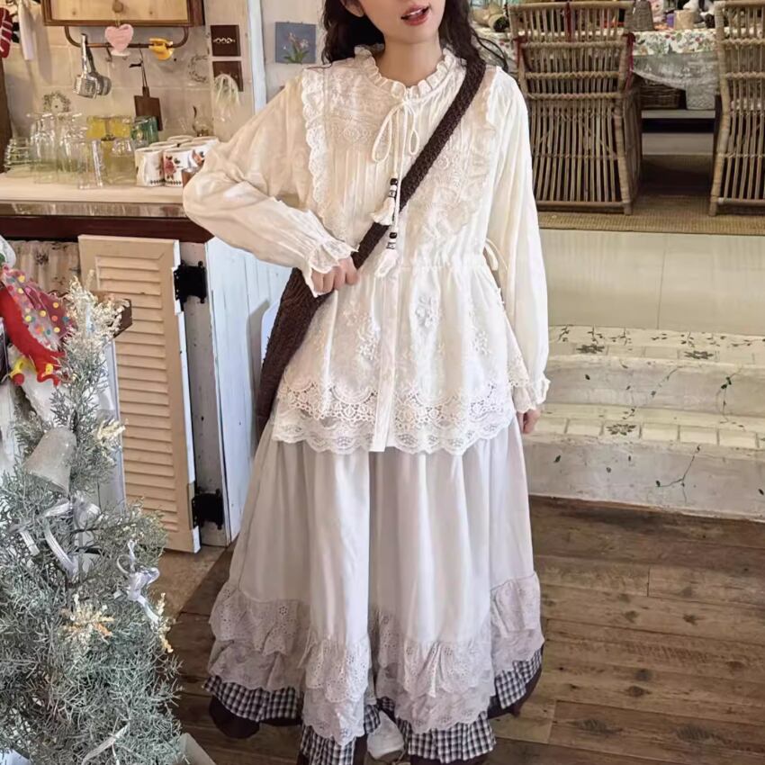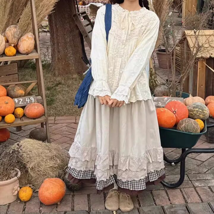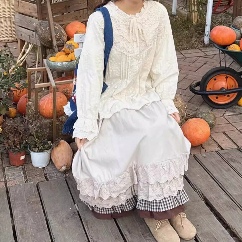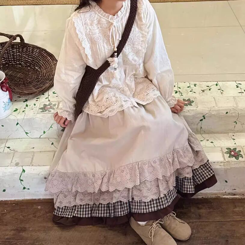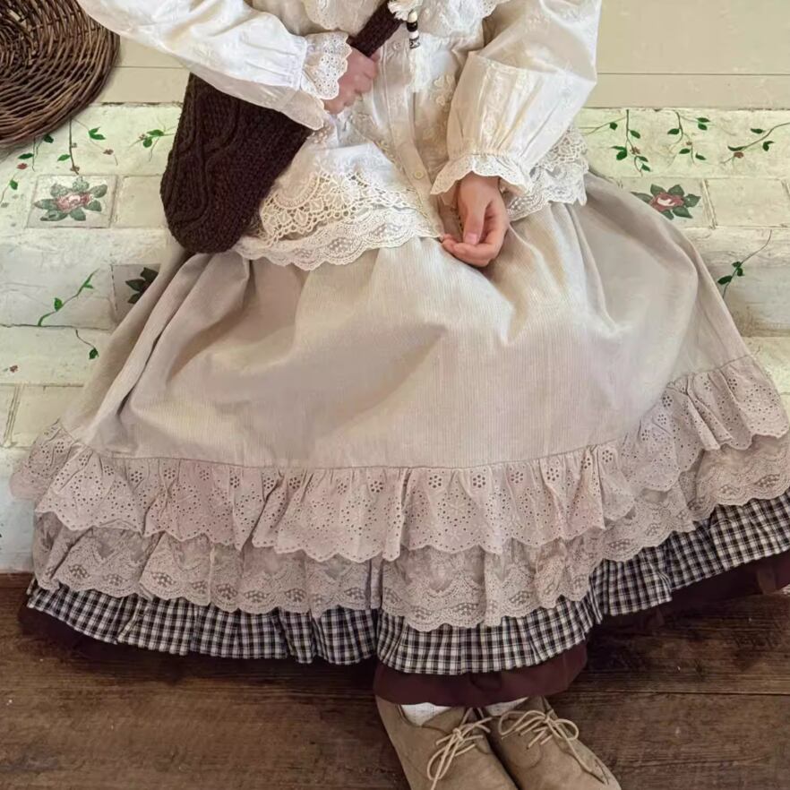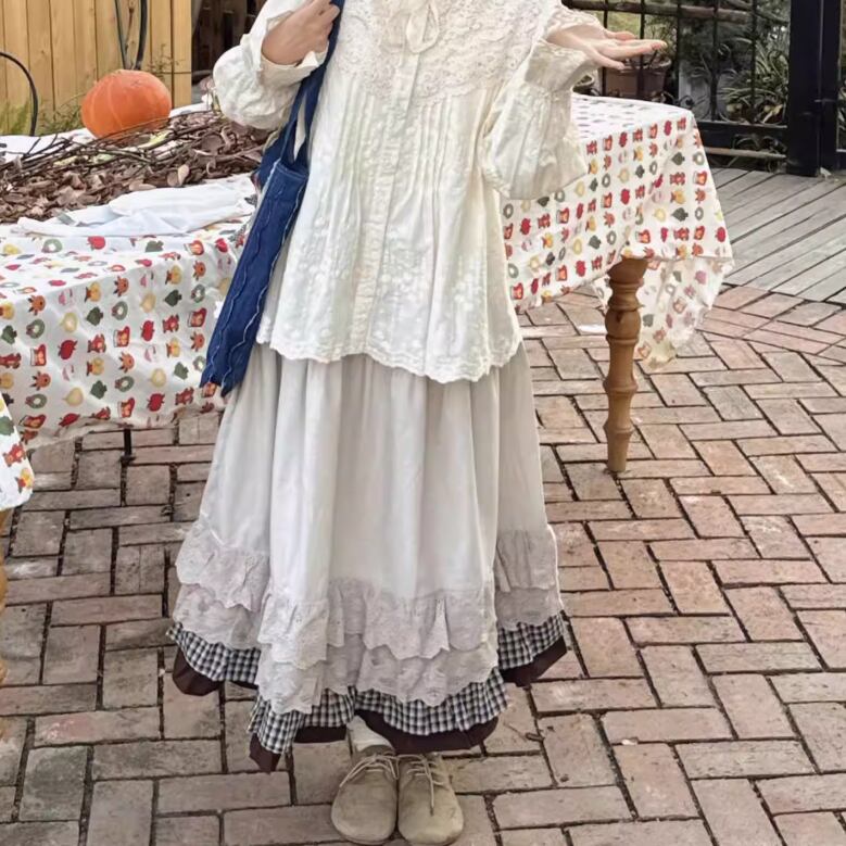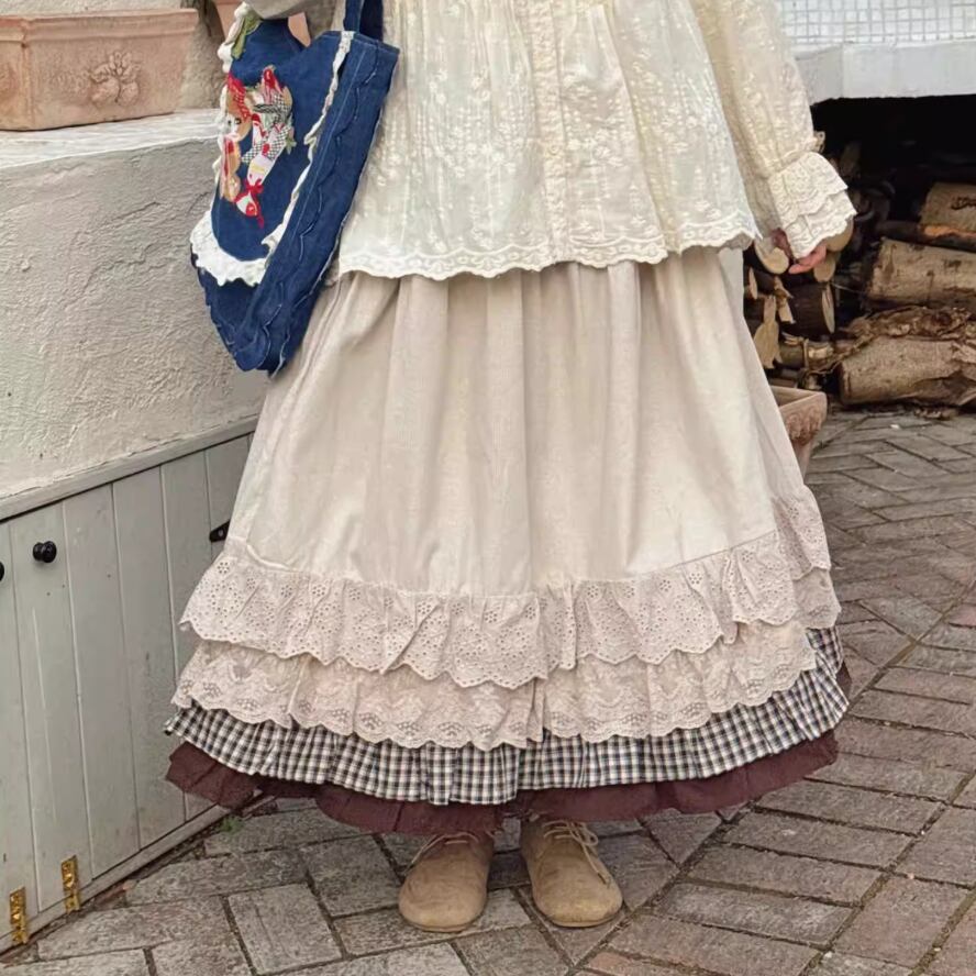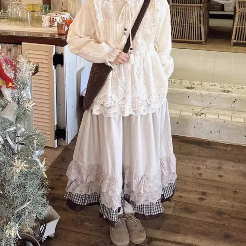フリルレースコットンスカート ・8814