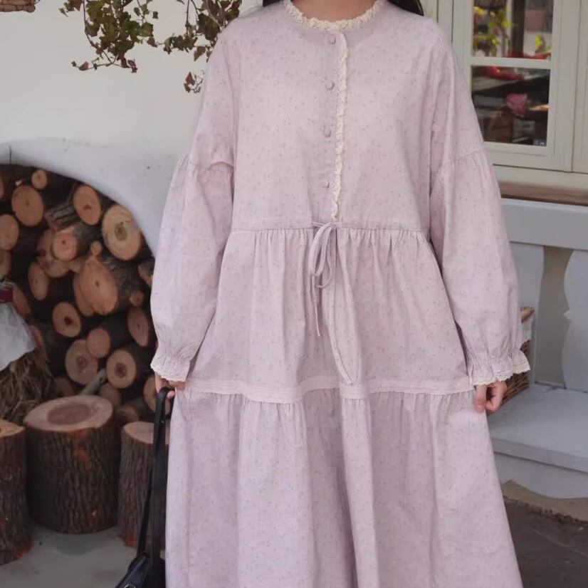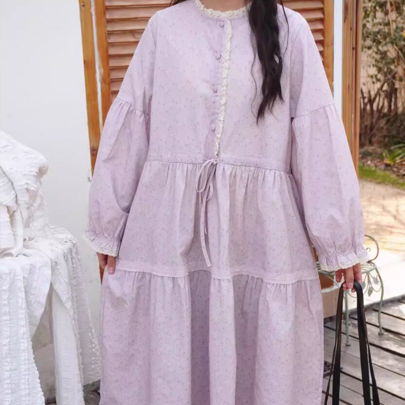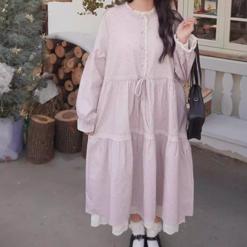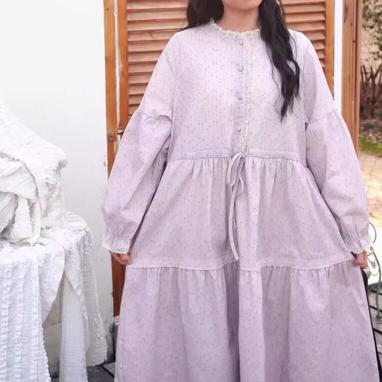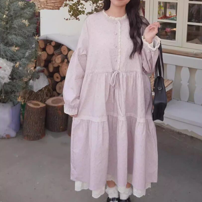 レース貼りコーデュロイロングワンピ ・6410