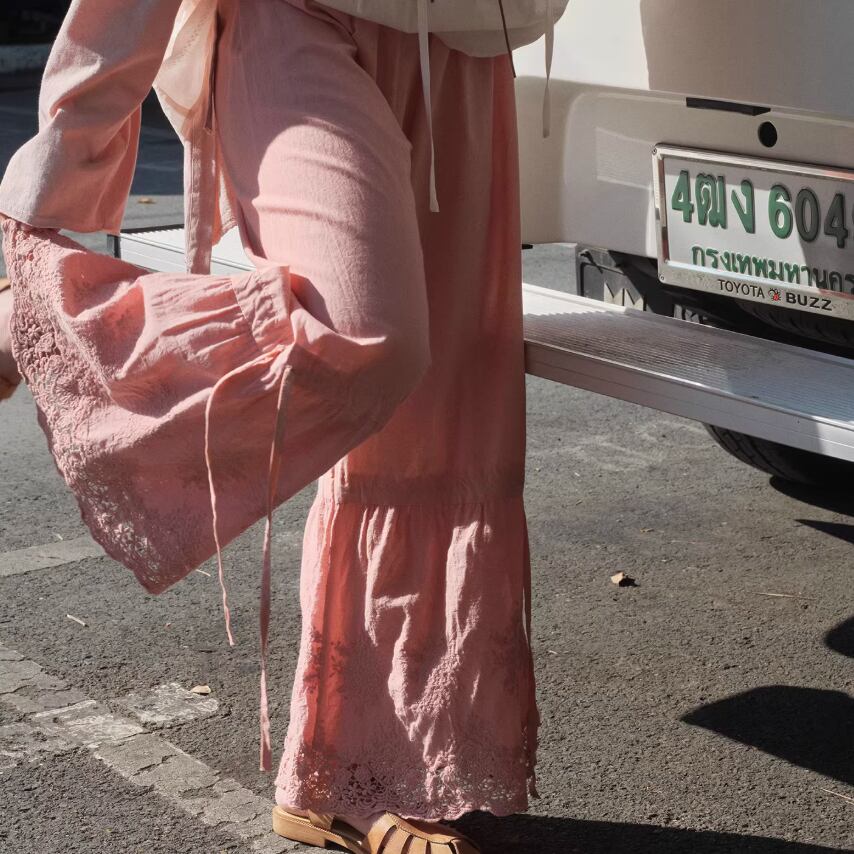 3色/カットワーク刺繍フレアパンツ ・8216