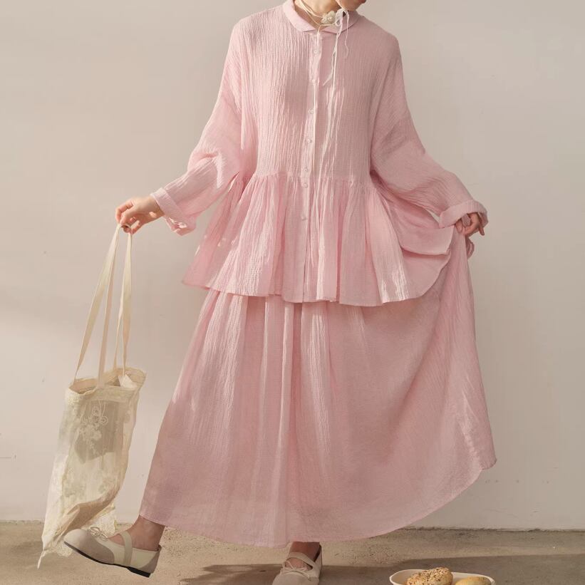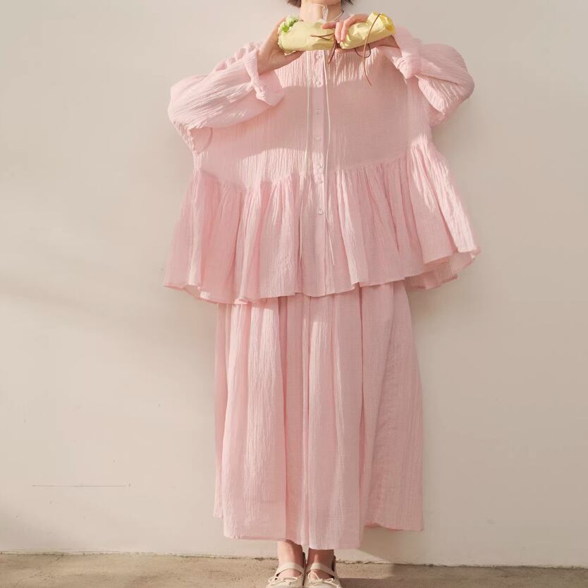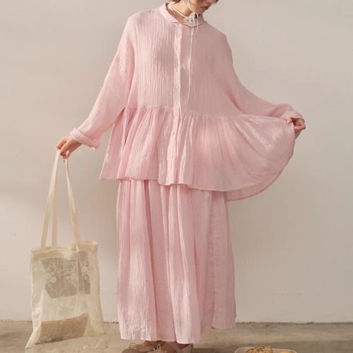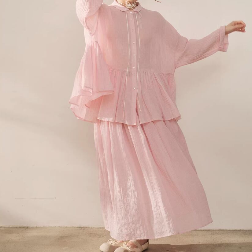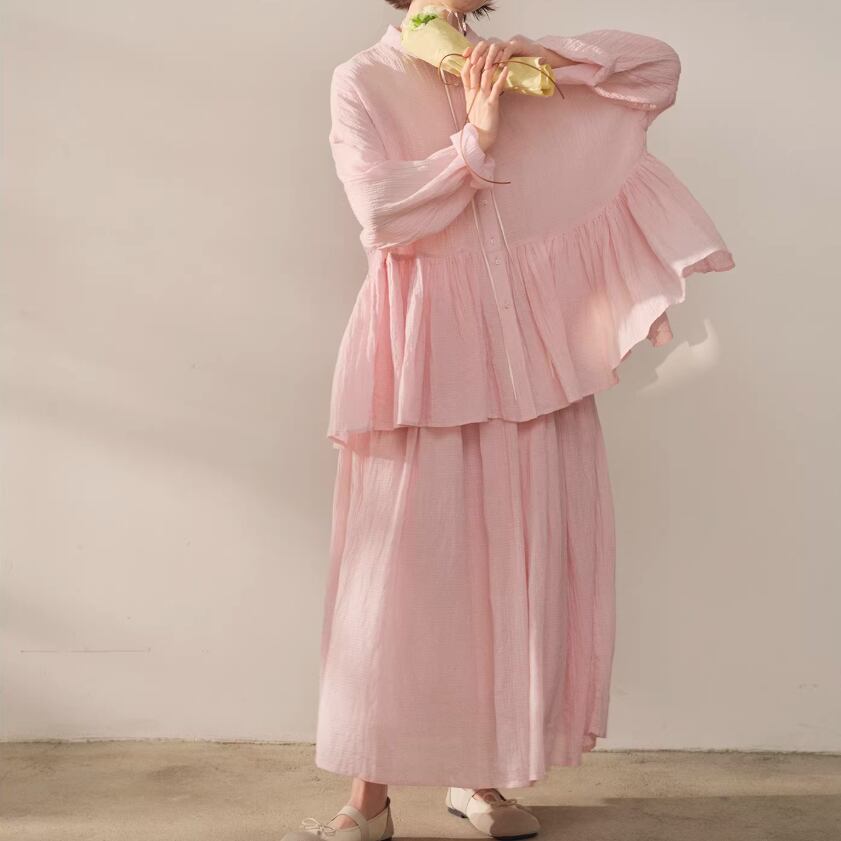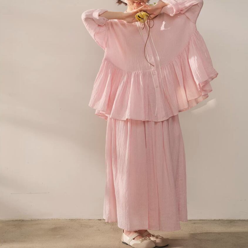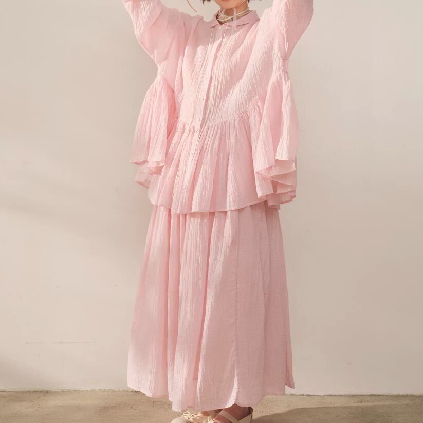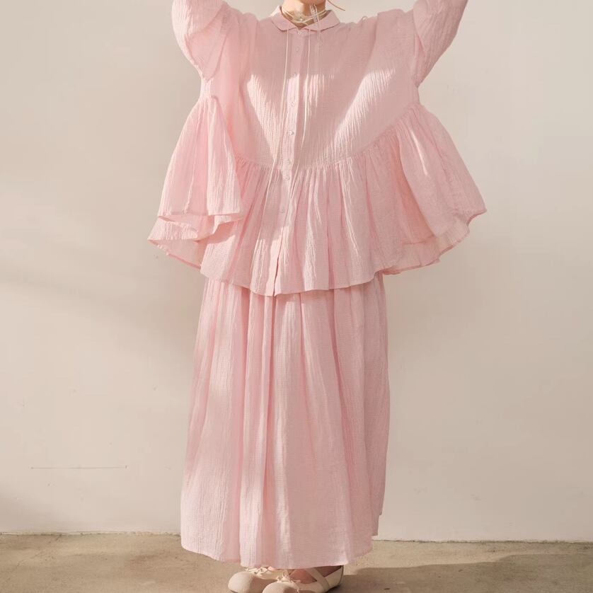 【2点セット】ピンタック袖トップス+ギャザージャンスカ ・6745