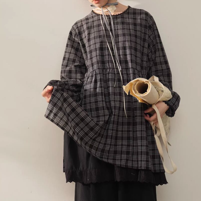丸ボタンワッフルブラウス ・3622