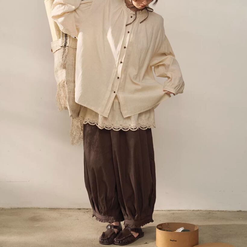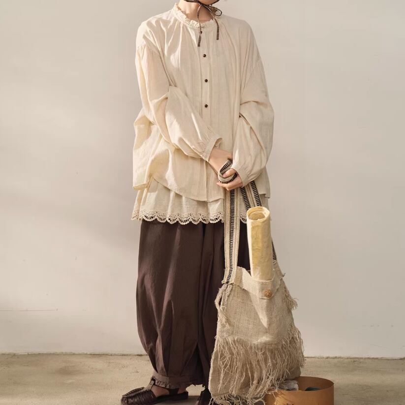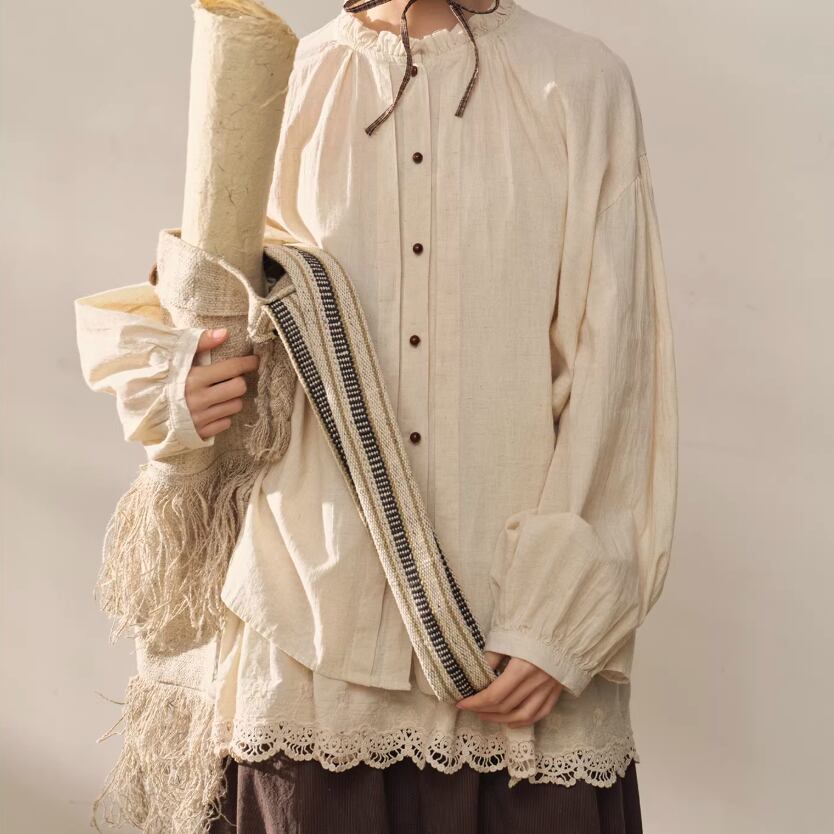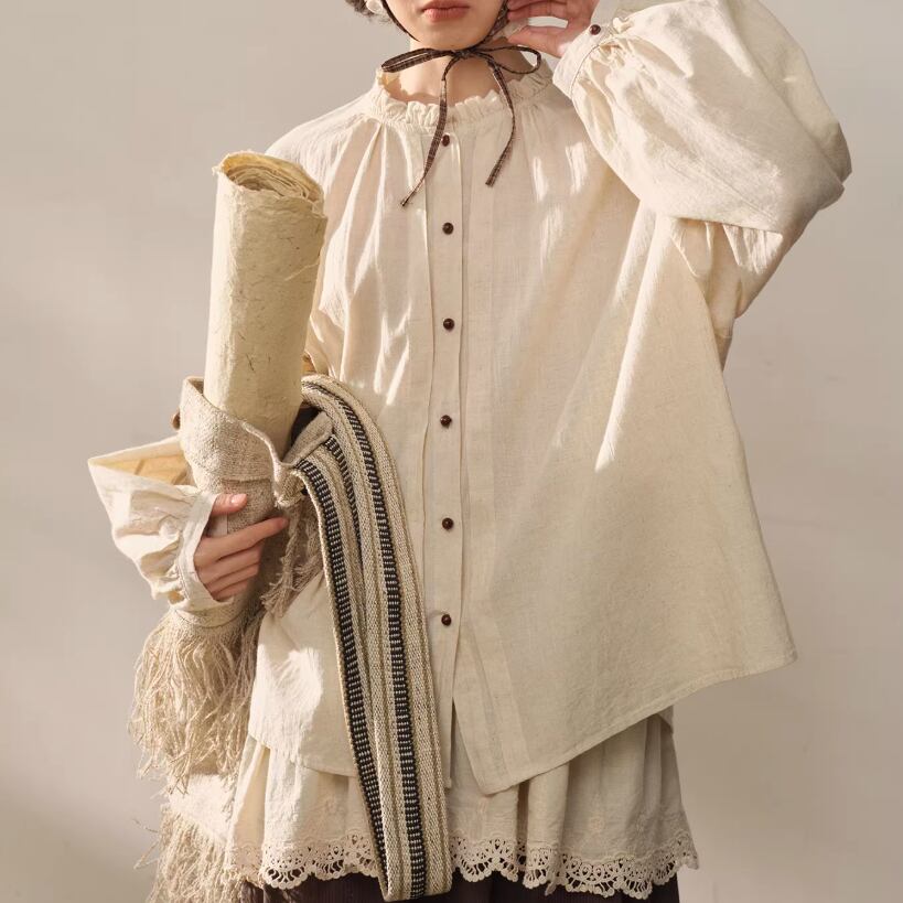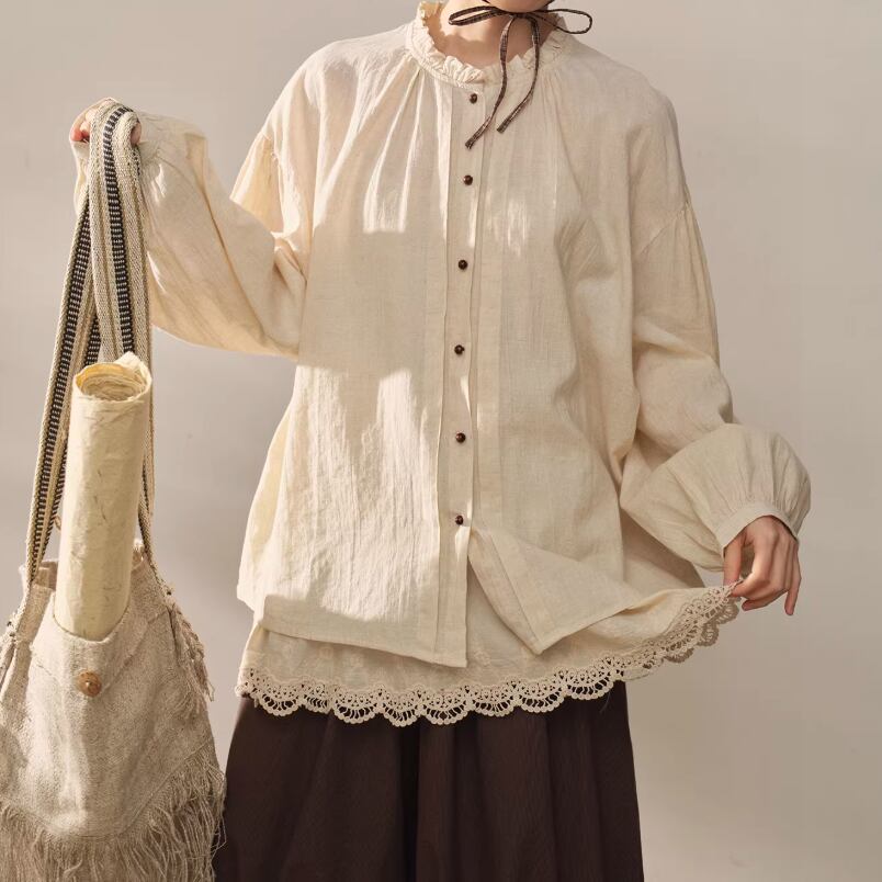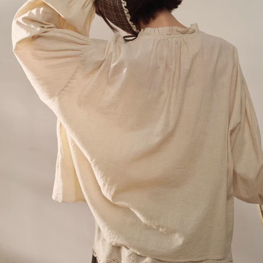 2色/フリルカラーコットンブラウス ・8607