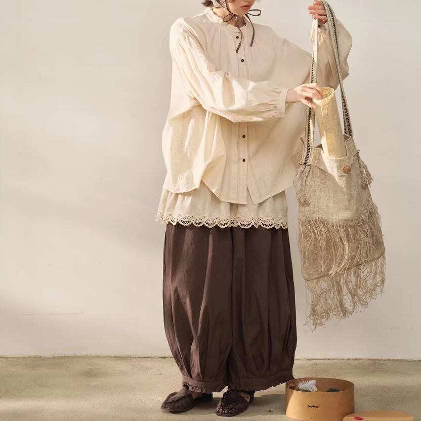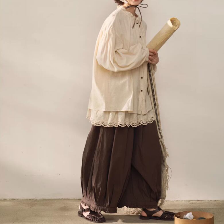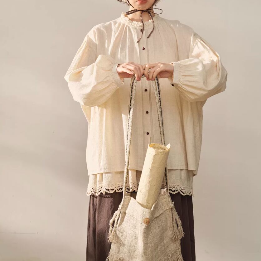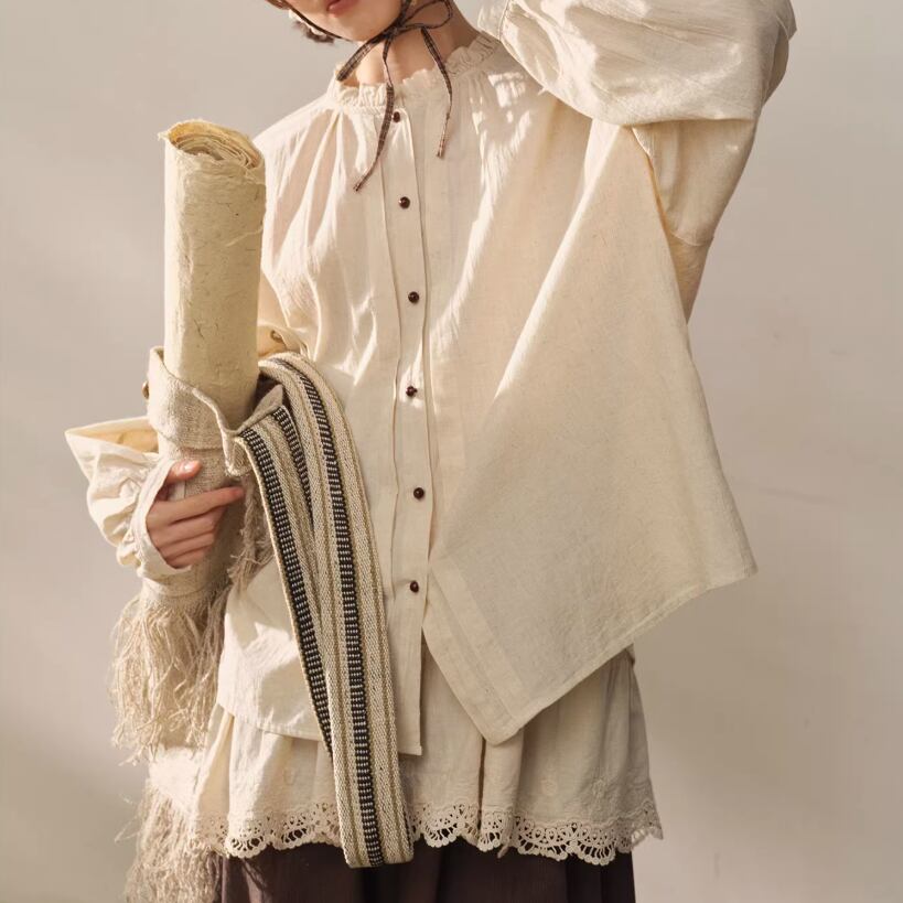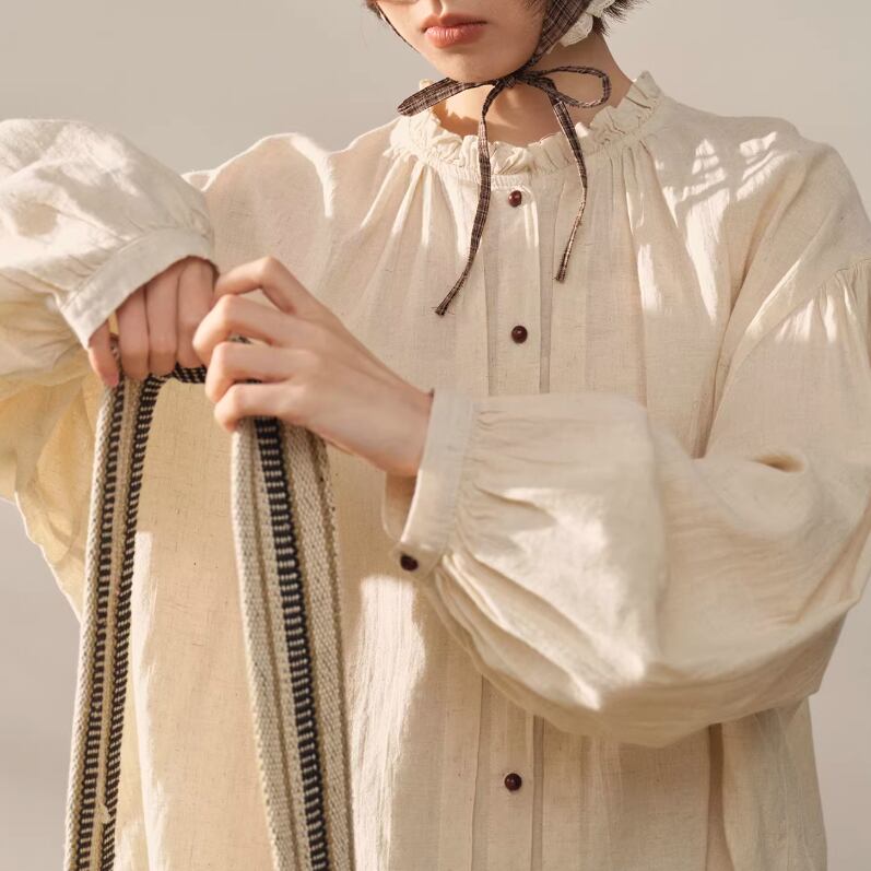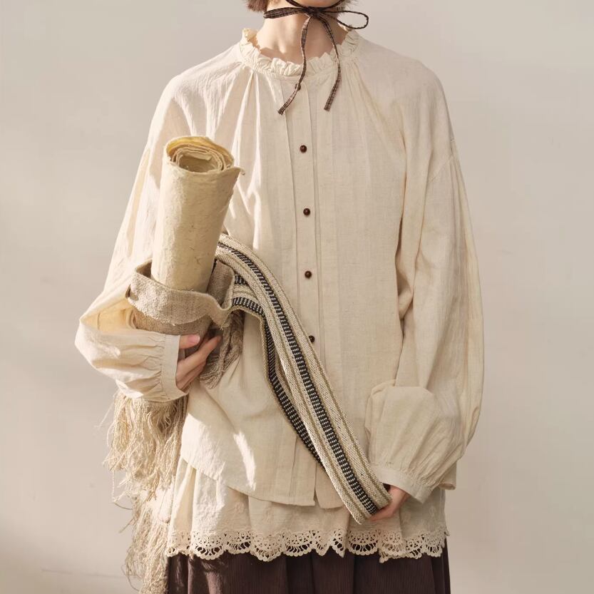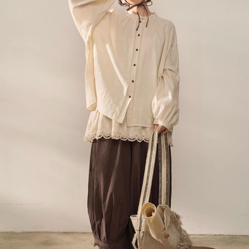 2色/フリルカラーコットンブラウス ・8607