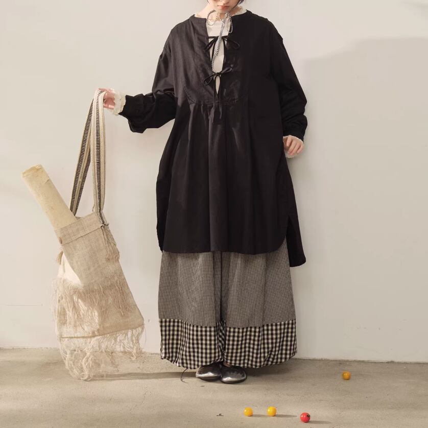 3色/レトロチェック柄シャツロングワンピ ・8186