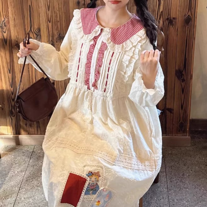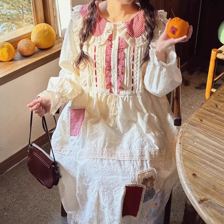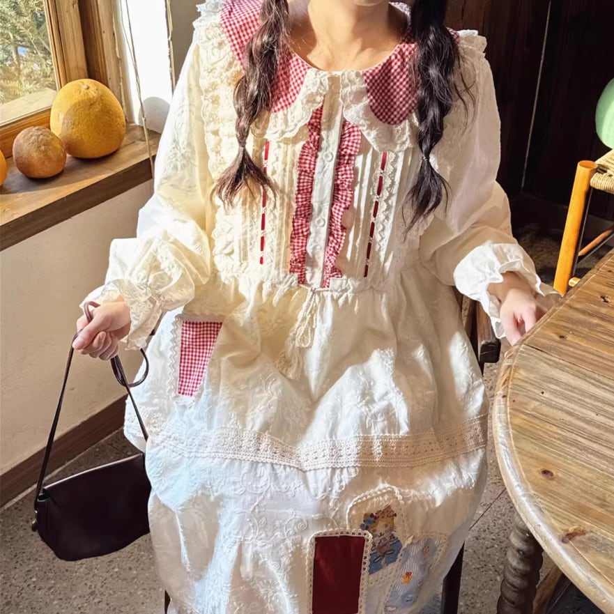 3色/レトロチェック柄シャツロングワンピ ・8186