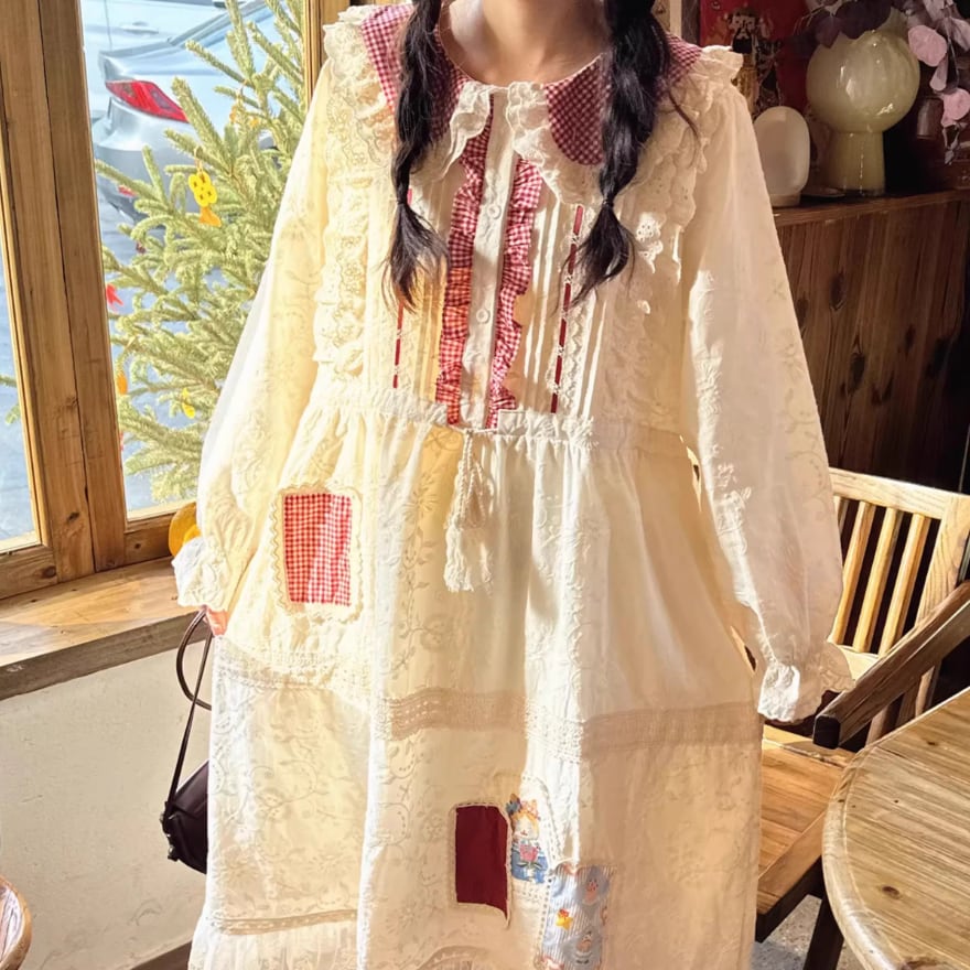 レース貼りコーデュロイロングワンピ ・6410