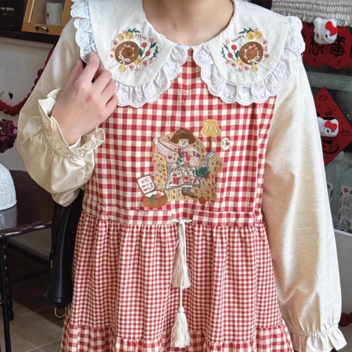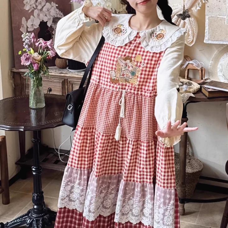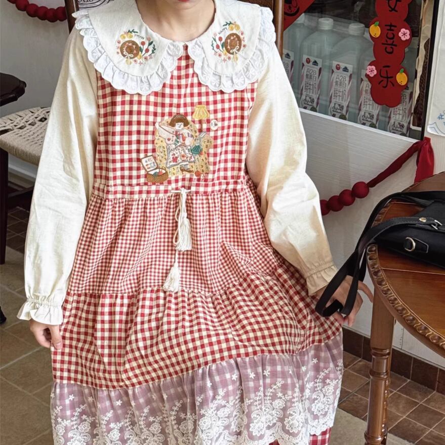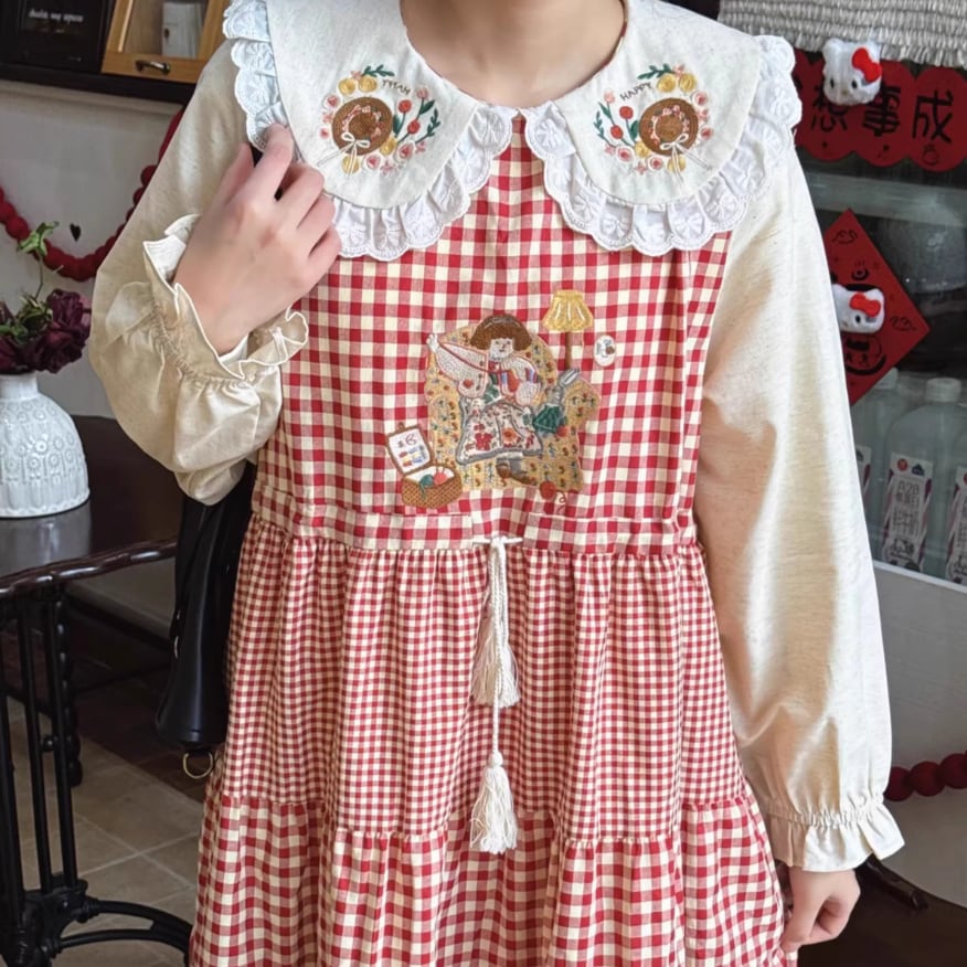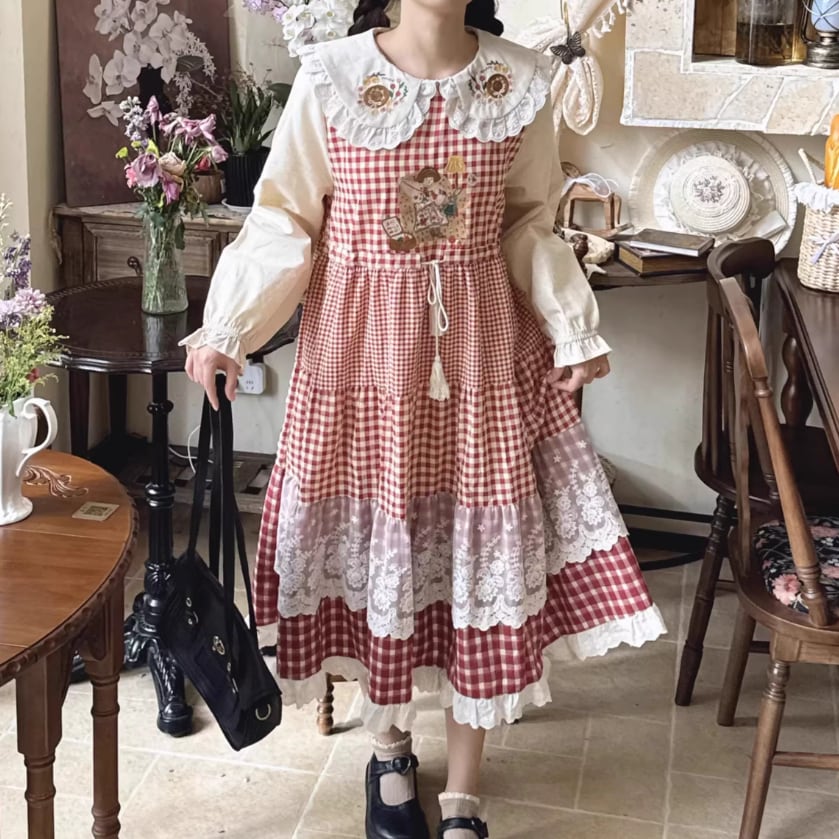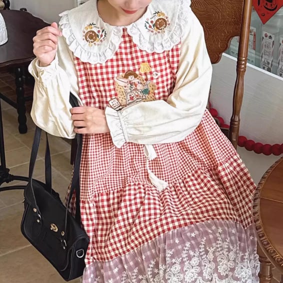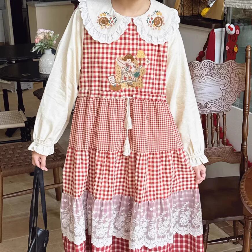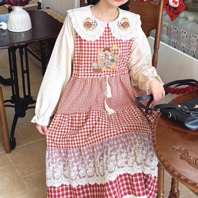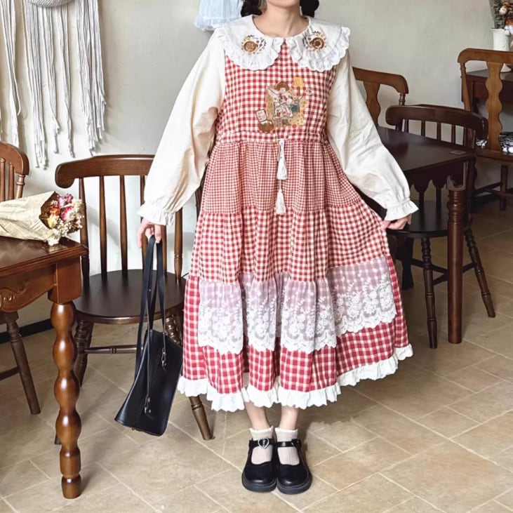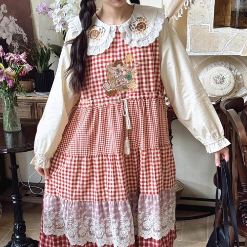 3色/レトロチェック柄シャツロングワンピ ・8186