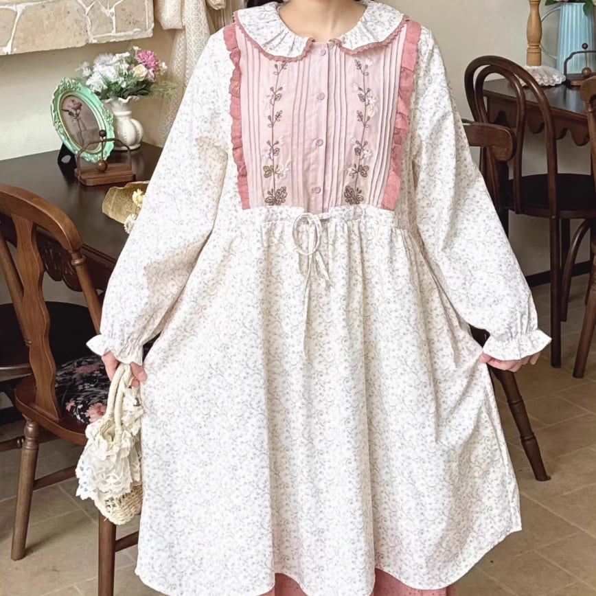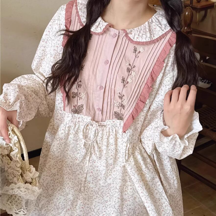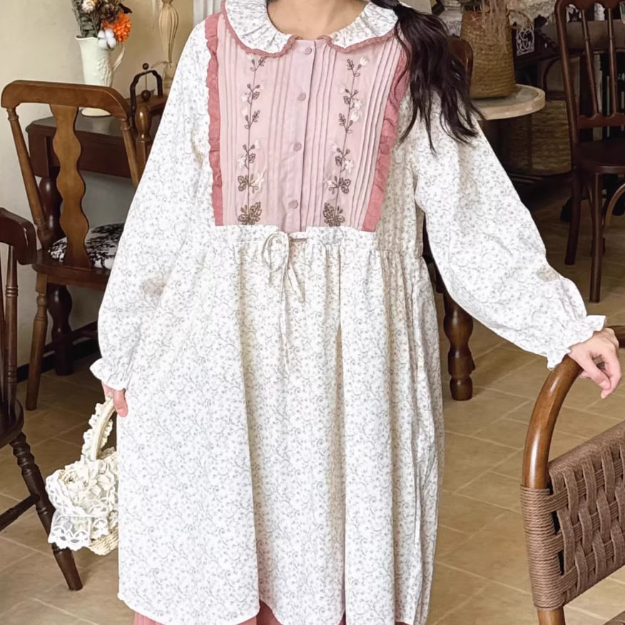 3色/レトロチェック柄シャツロングワンピ ・8186