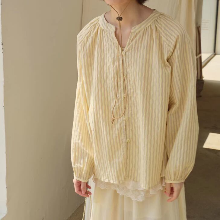 2色/フリルカラーコットンブラウス ・8607