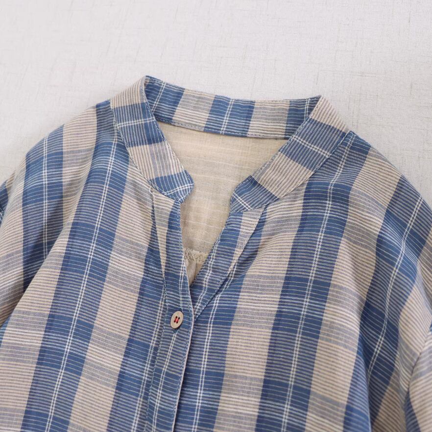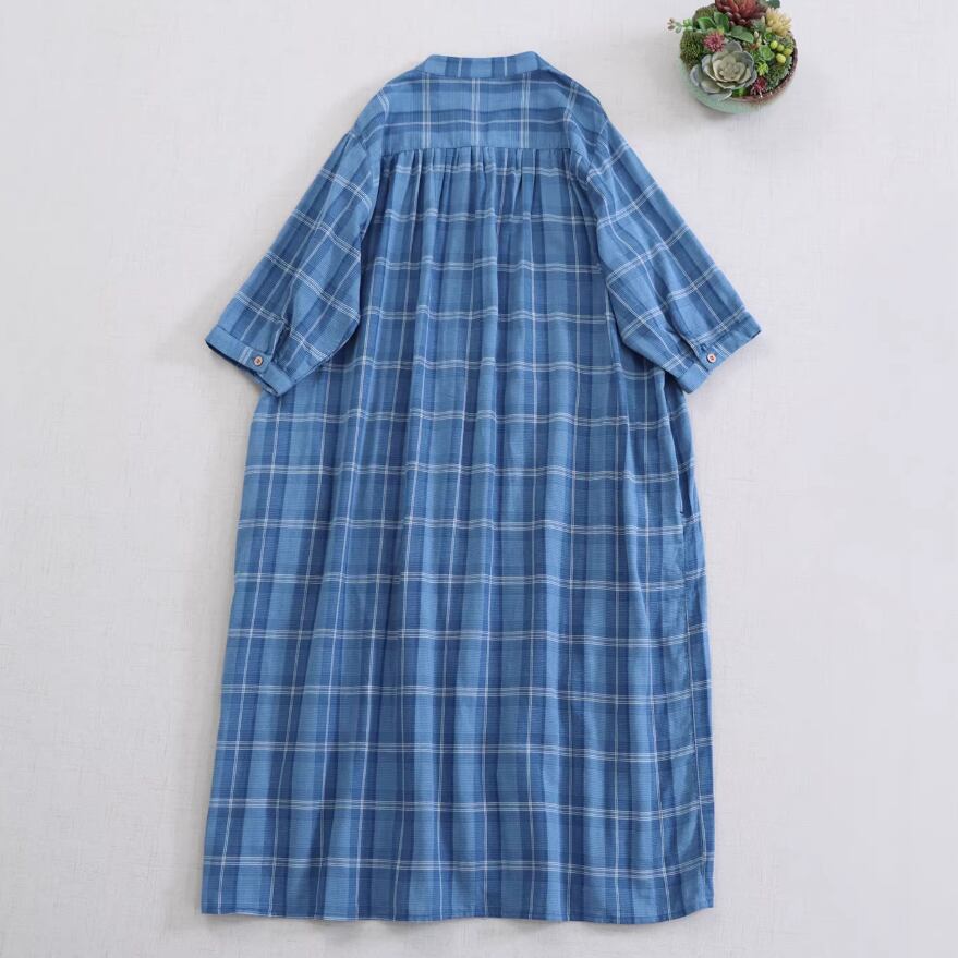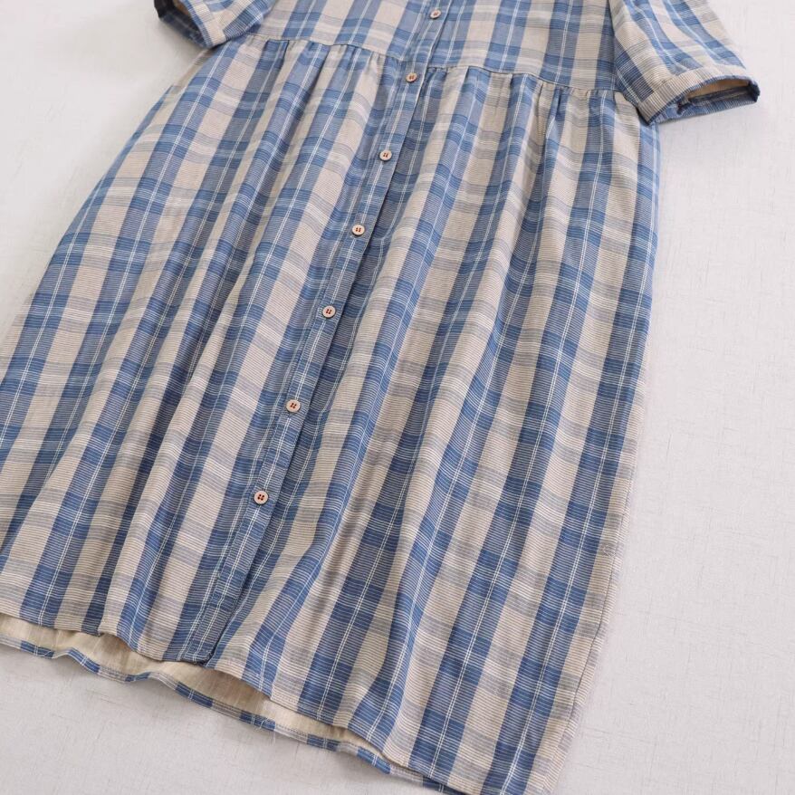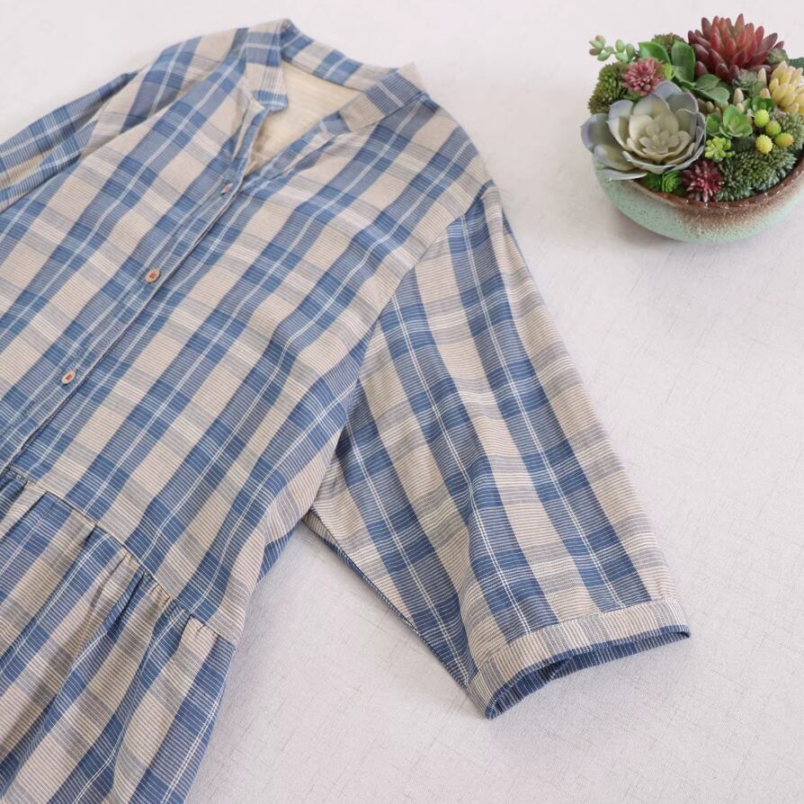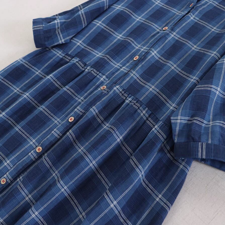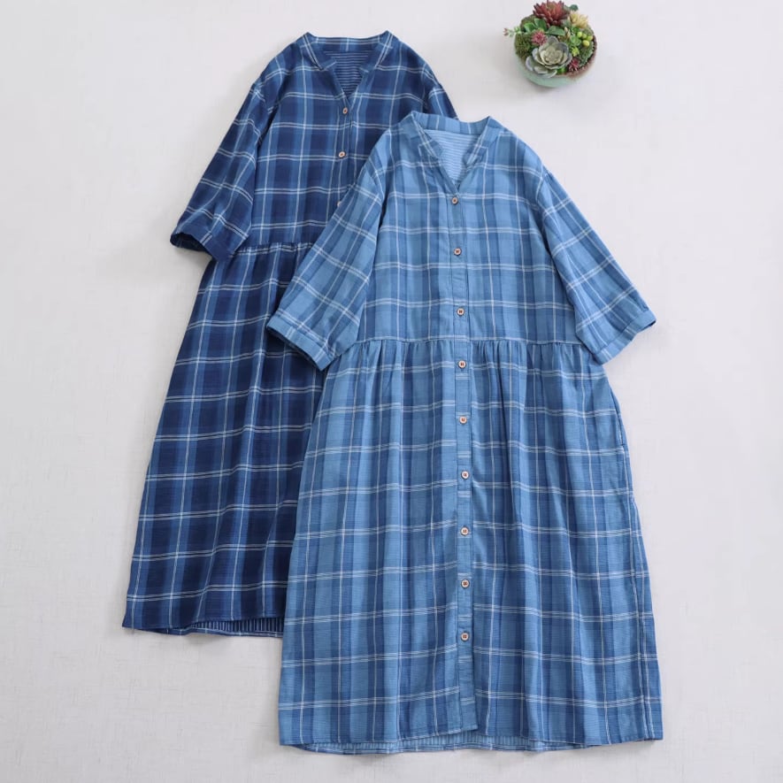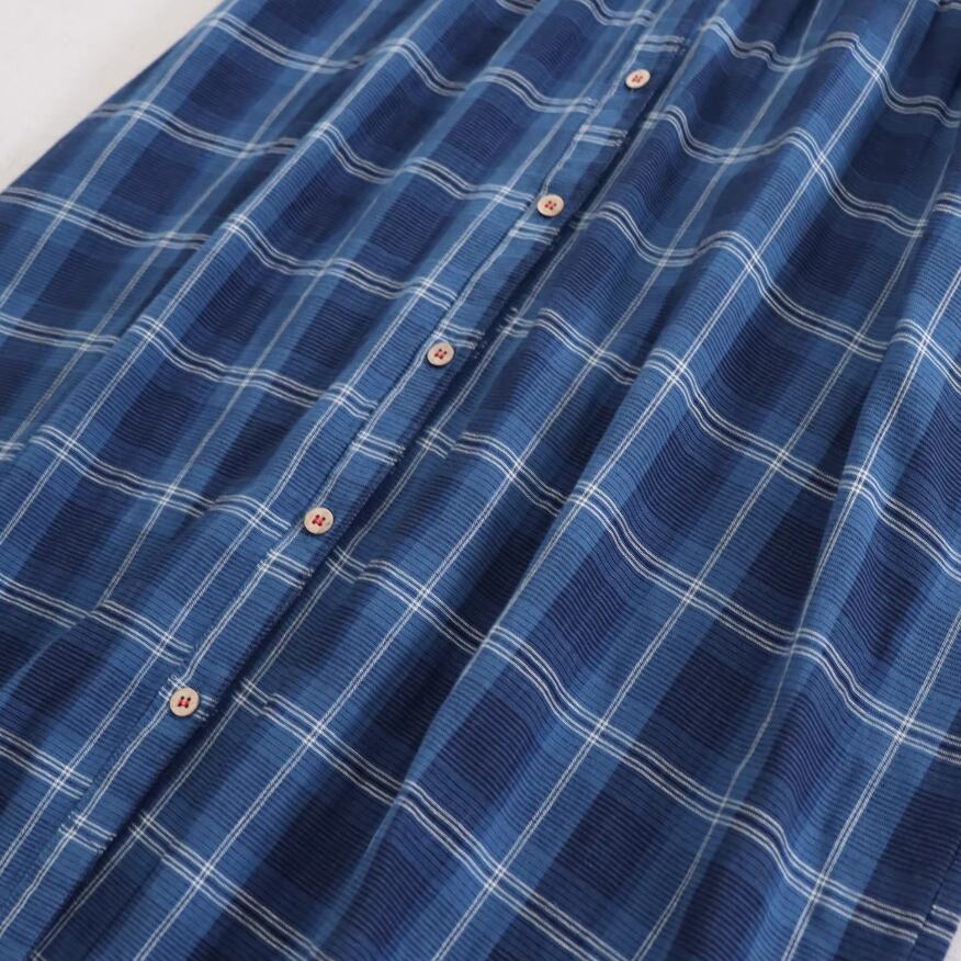 3色/レトロチェック柄シャツロングワンピ ・8186