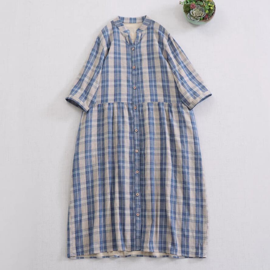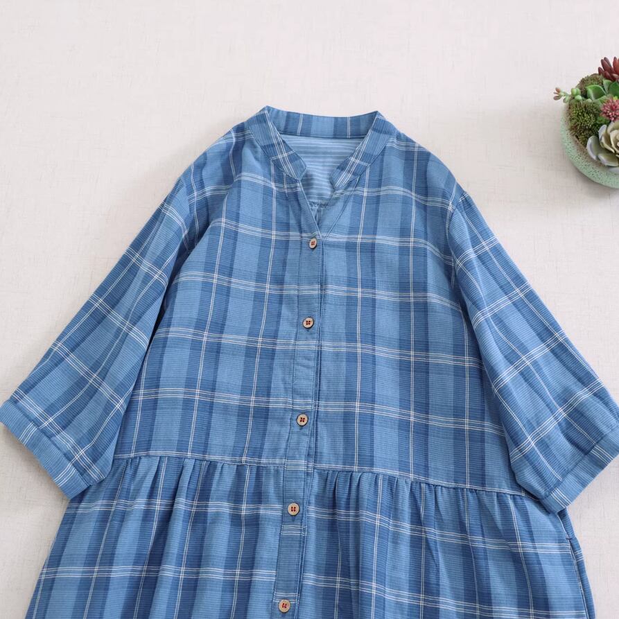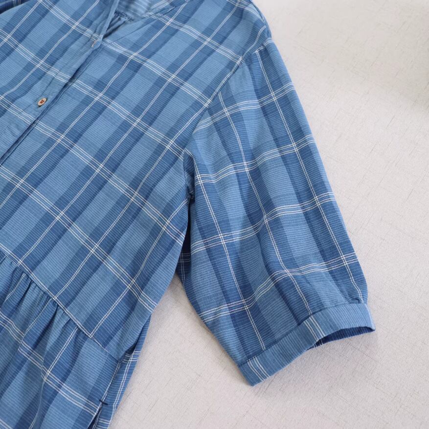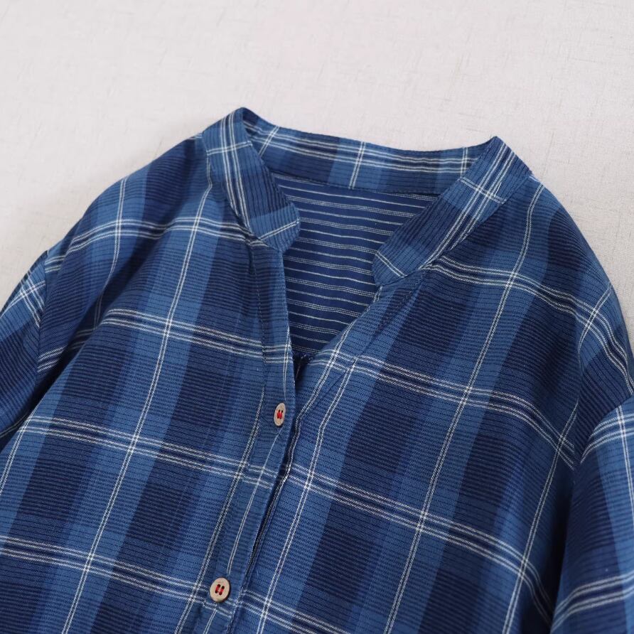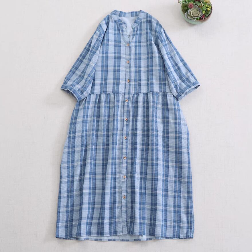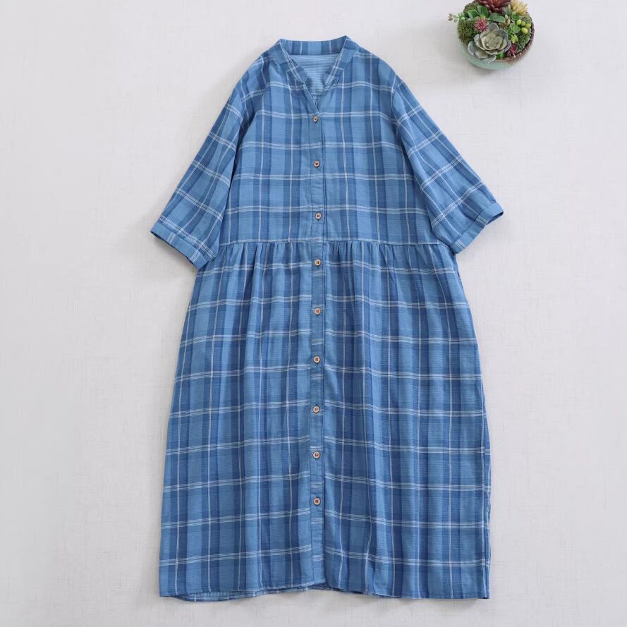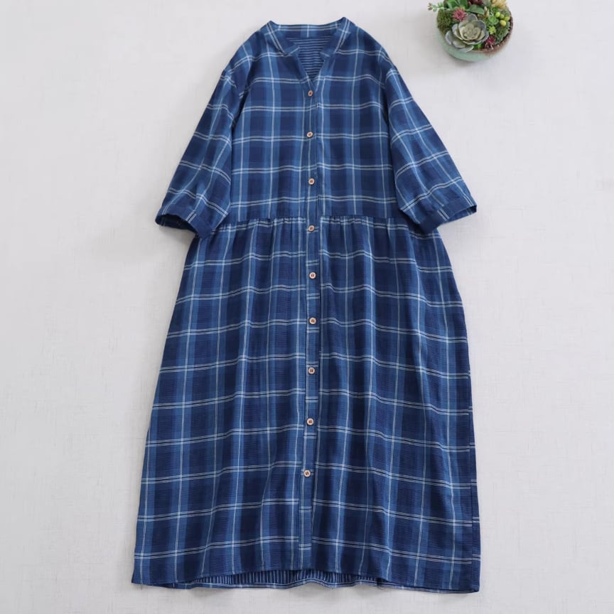 3色/レトロチェック柄シャツロングワンピ ・8186