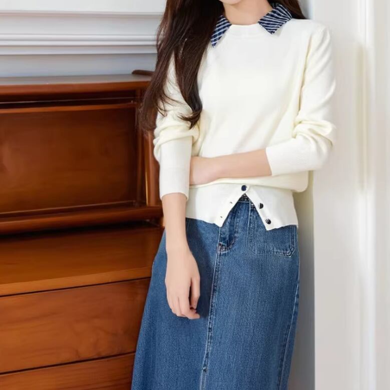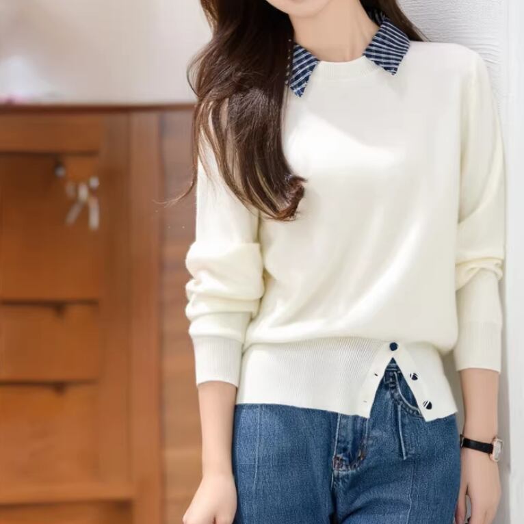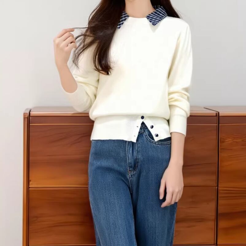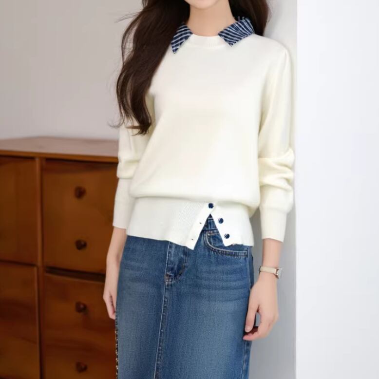 2色/ループボタンネックトップス ・10443