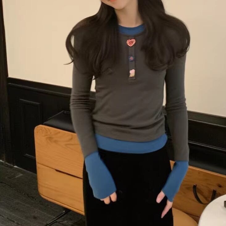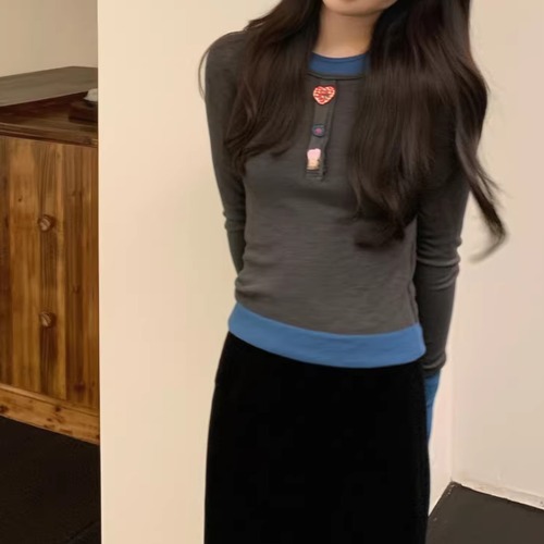 2色/ループボタンネックトップス ・10443