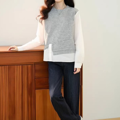 2色/ループボタンネックトップス ・10443