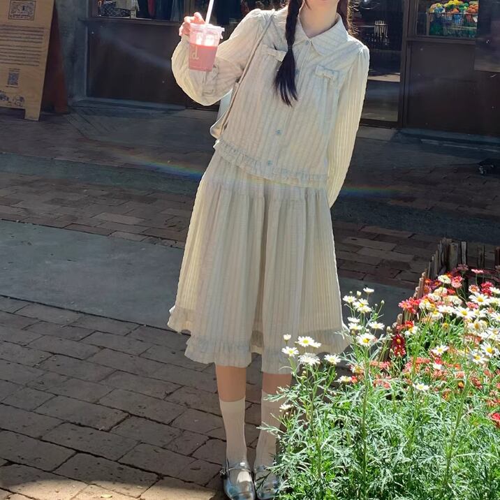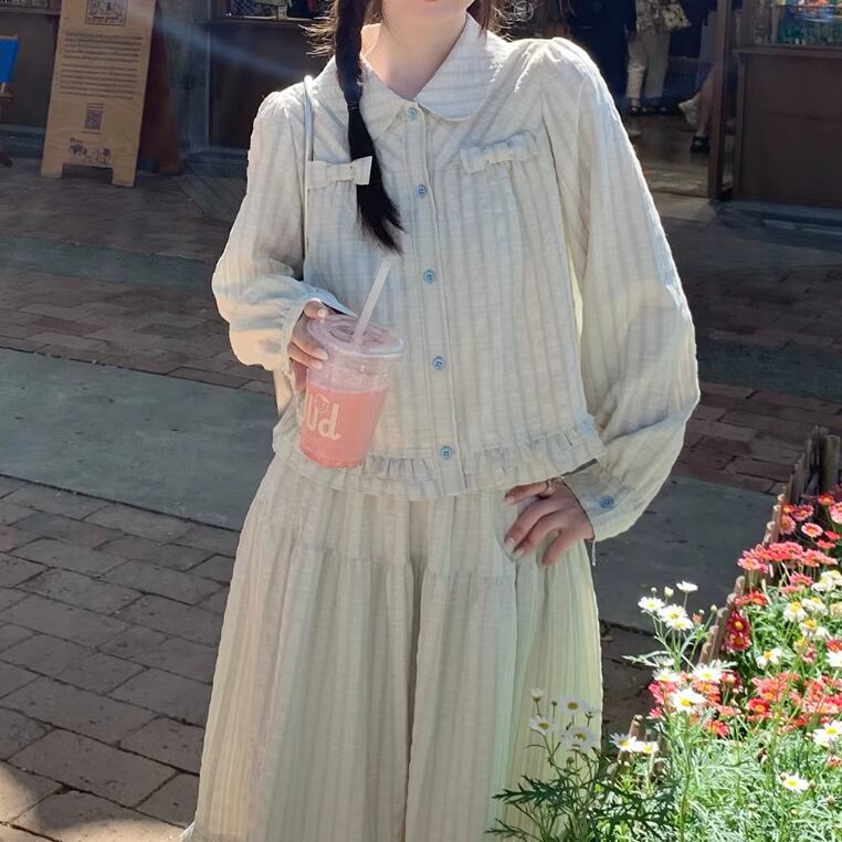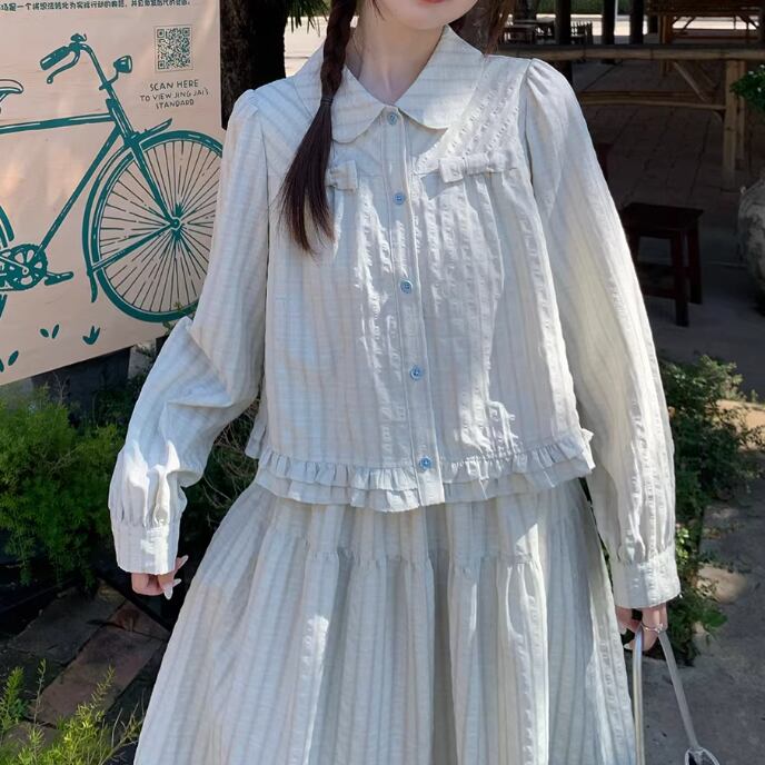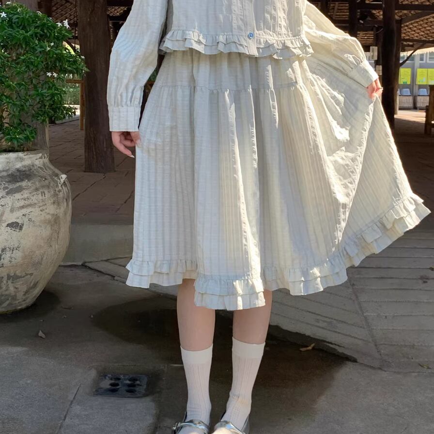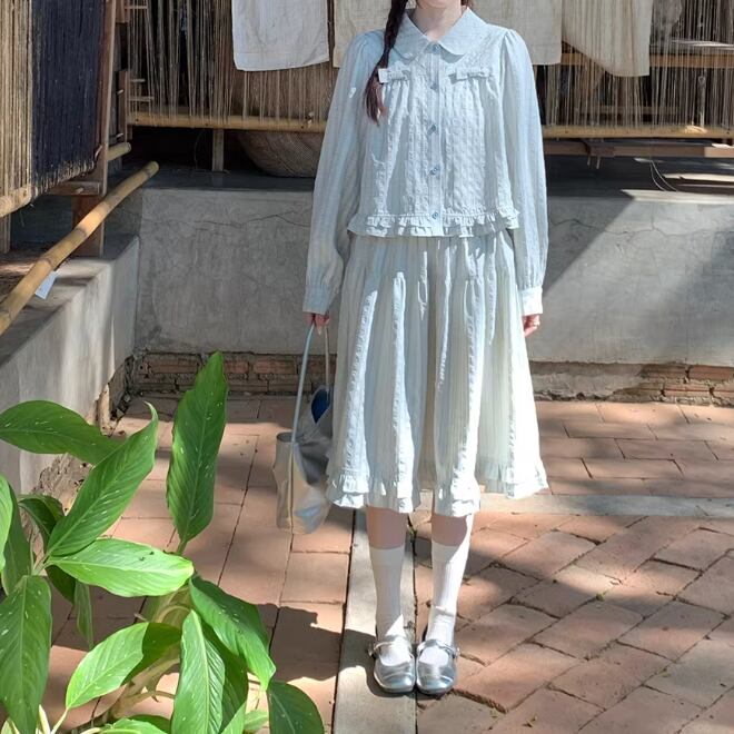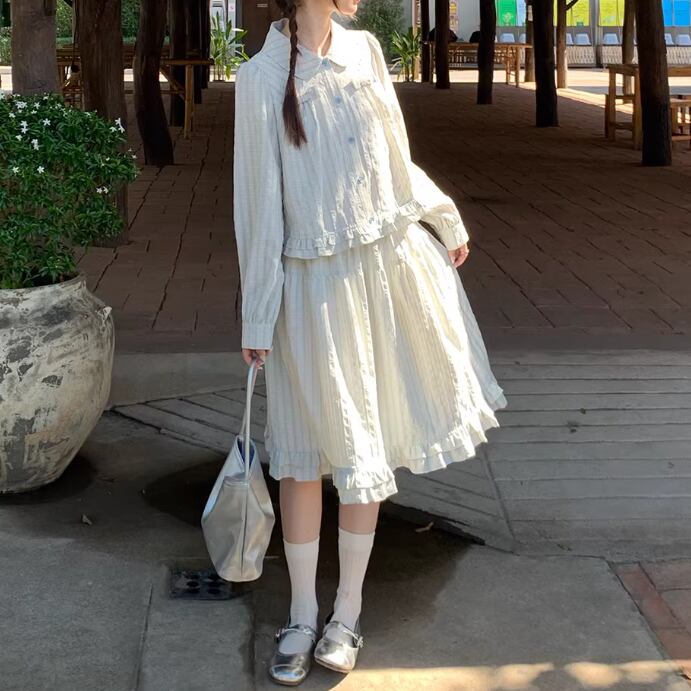 【2点セット】ピンタック袖トップス+ギャザージャンスカ ・6745