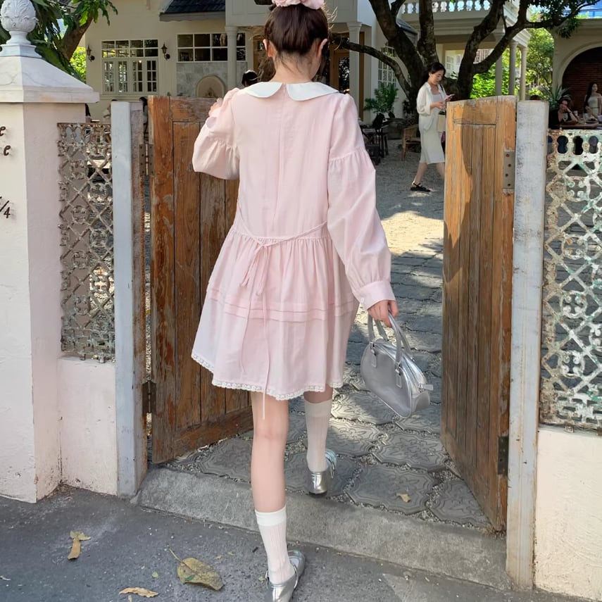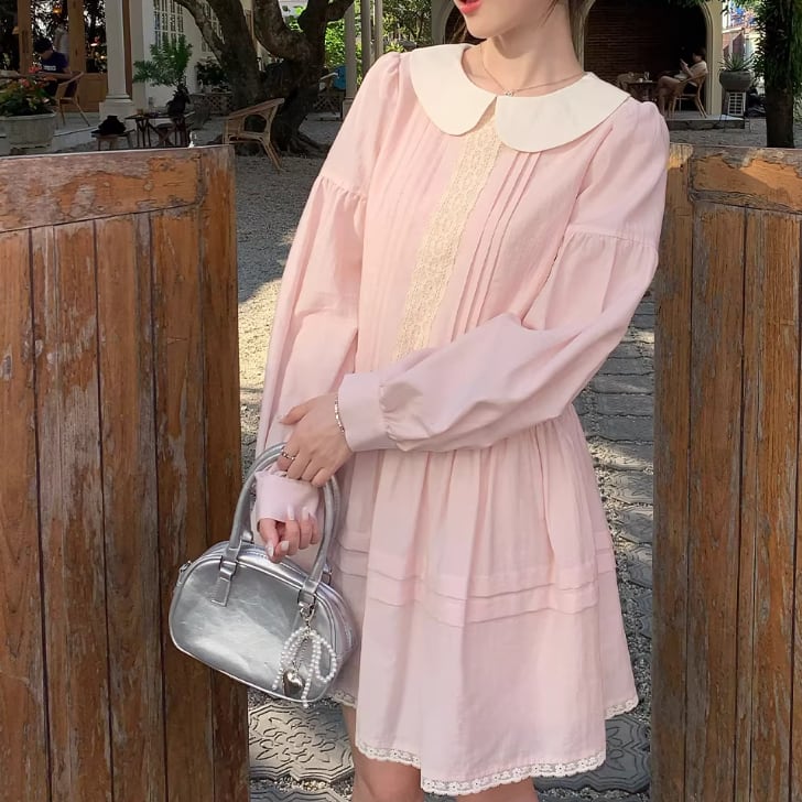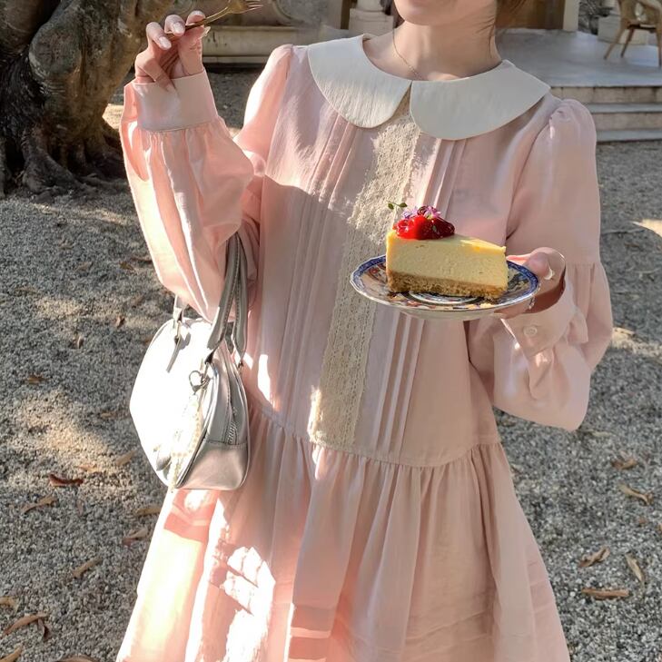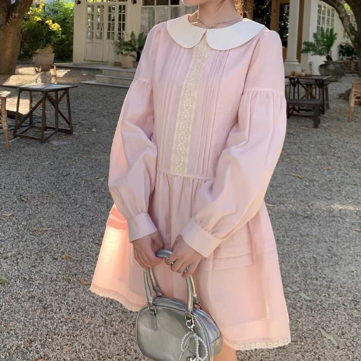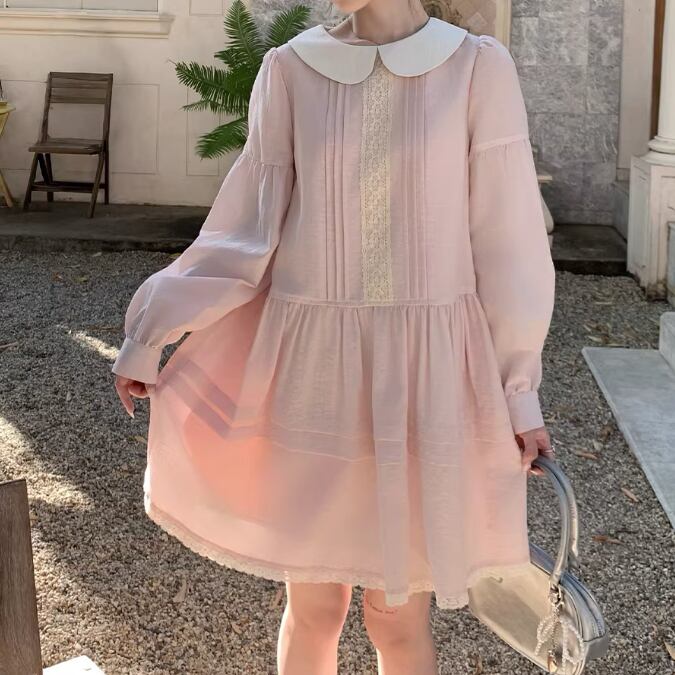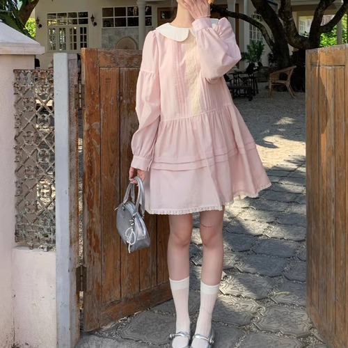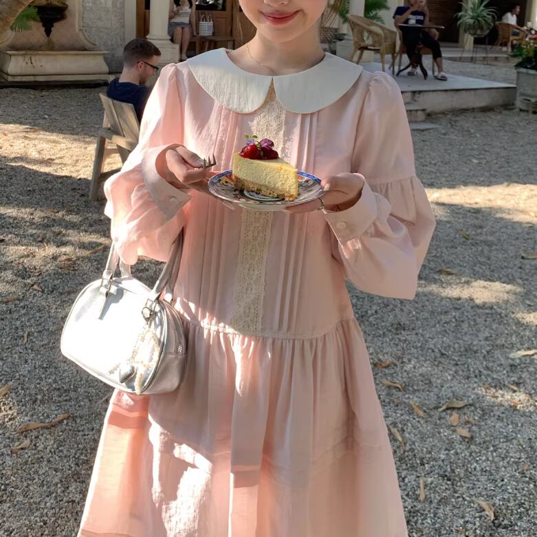 レース貼りコーデュロイロングワンピ ・6410