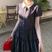 レース貼りコーデュロイロングワンピ ・6410