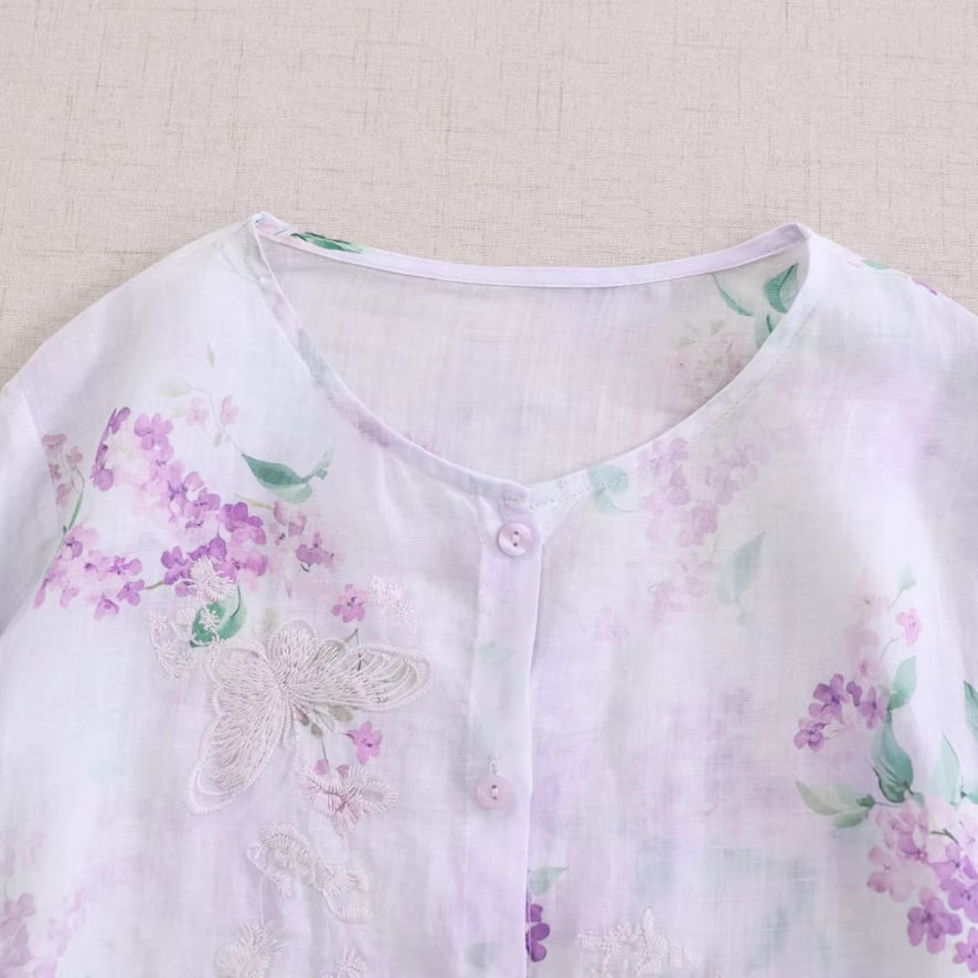 ラウンドネックレトロチェック柄ブラウス ・8142