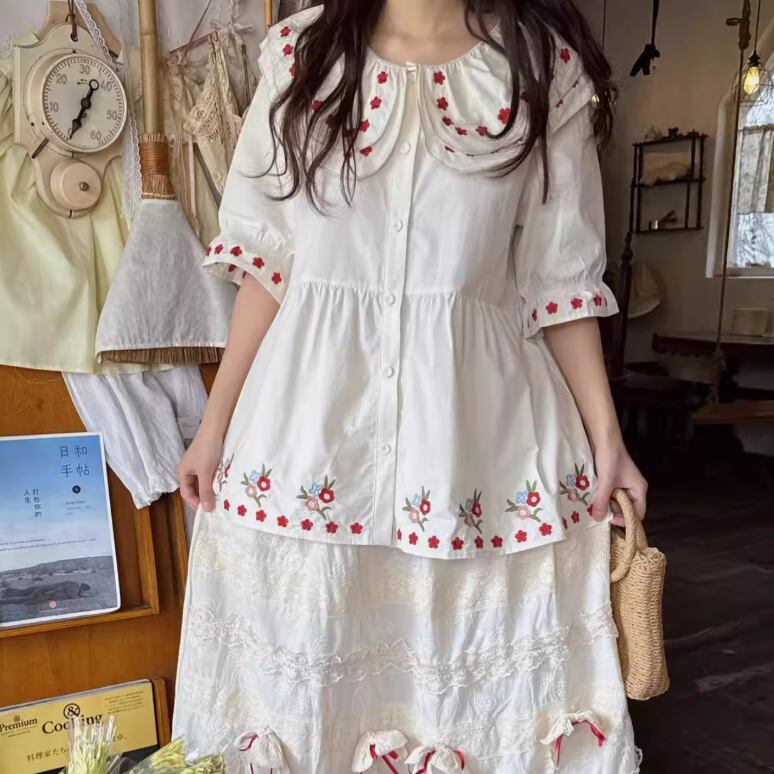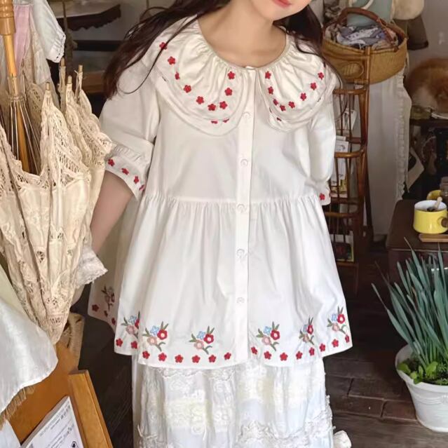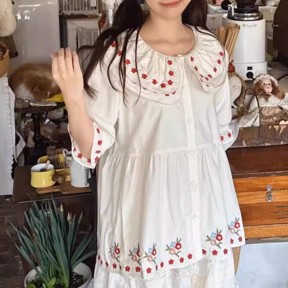 2色/フリルカラーコットンブラウス ・8607