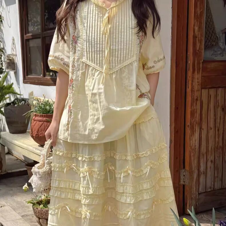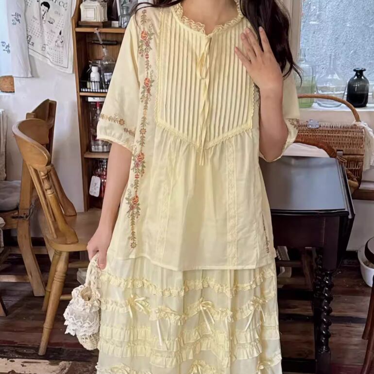【2点セット】ピンタック袖トップス+ギャザージャンスカ ・6745