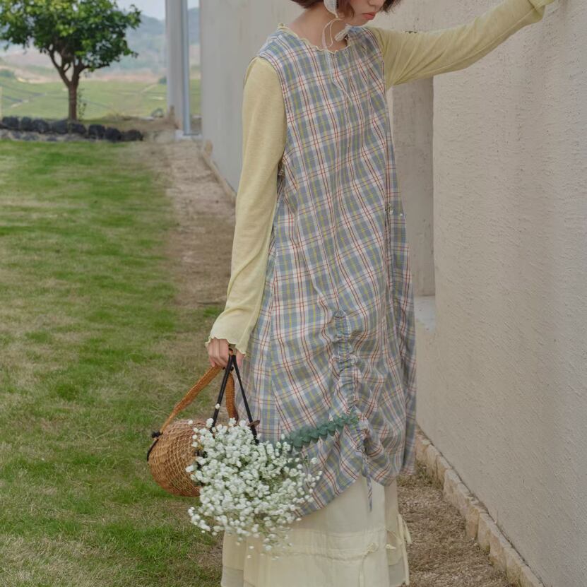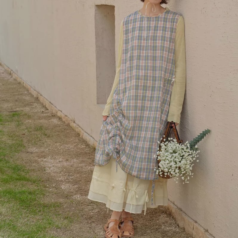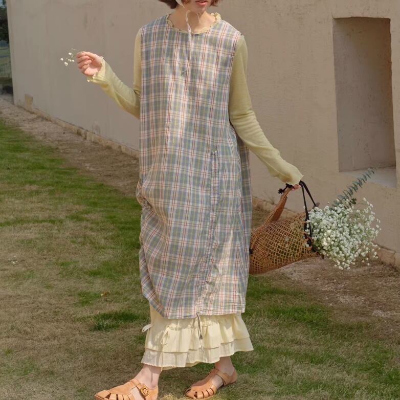 ピンタックVネックリネンジャンスカ ・7269