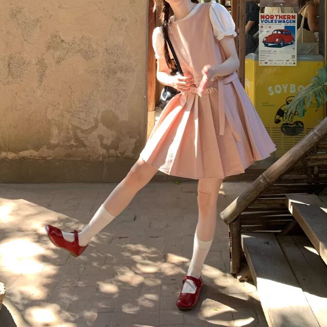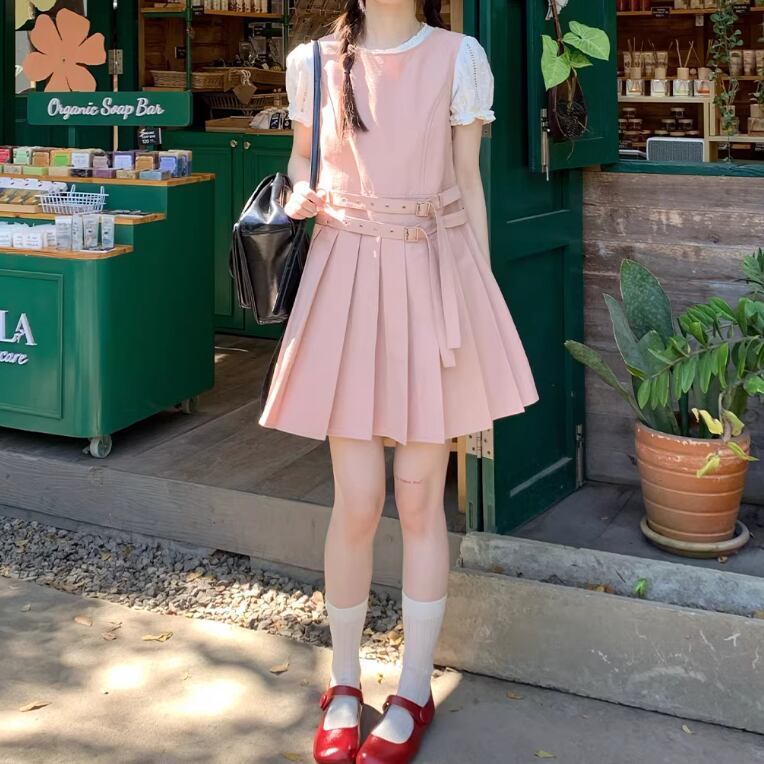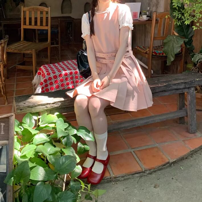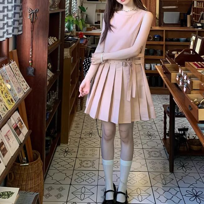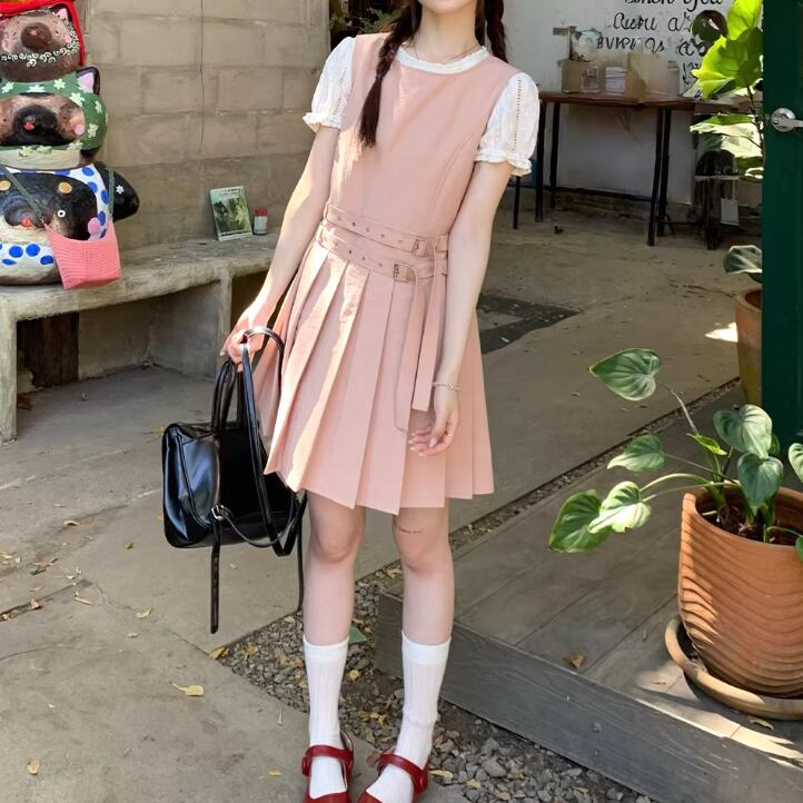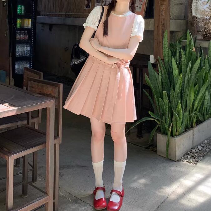バックリボンリネンジャンパースカート ・3657