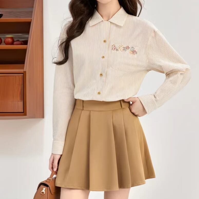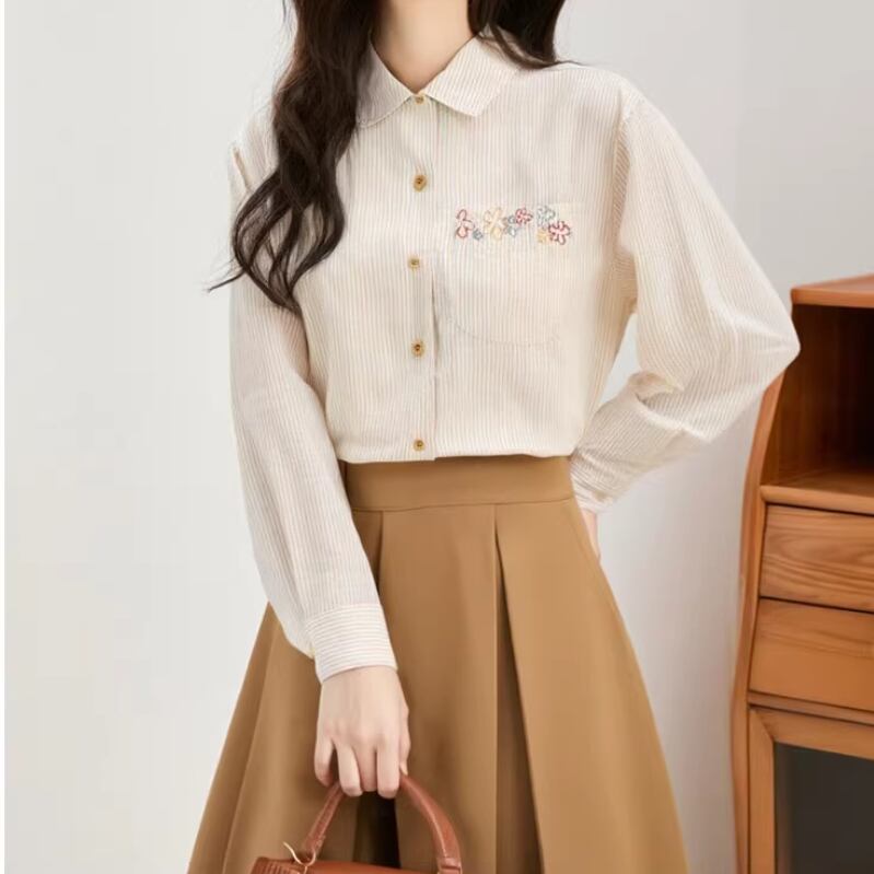 ラウンドネックレトロチェック柄ブラウス ・8142