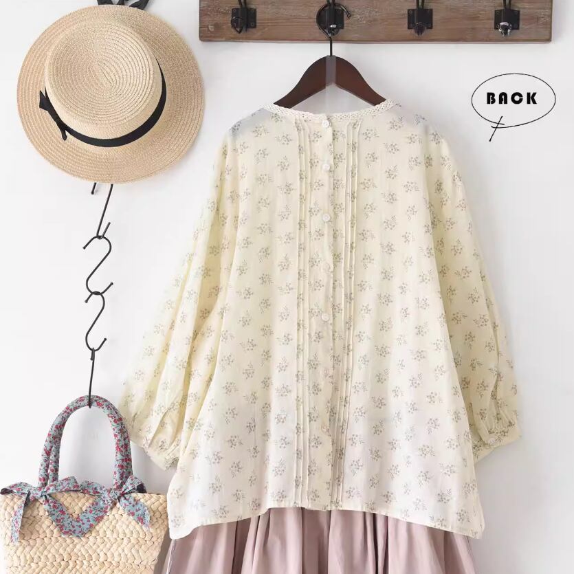 3色/レースネックコットンブラウス ・9297