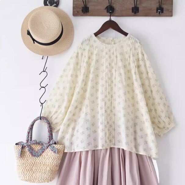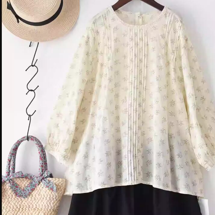 ラウンドネックレトロチェック柄ブラウス ・8142