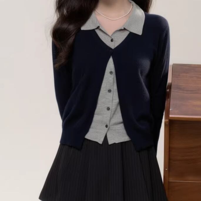 2色/Wレースカラーボタントップス ・4178
