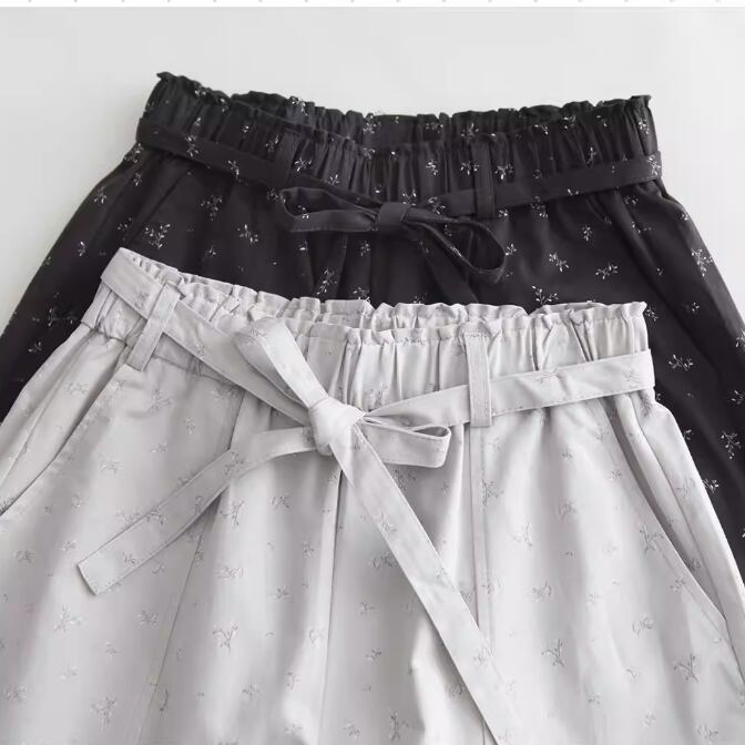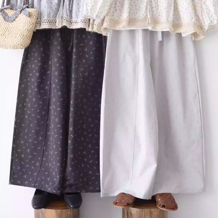 2色/裾フリルデザイン刺繍パンツ ・7790